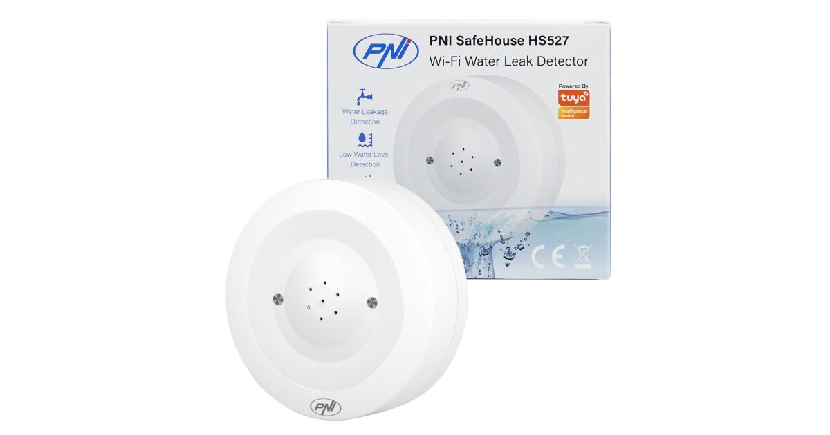 PNI SafeHouse HS527 senzor poplave detektor s Wi-Fi, sa 80dB zvučnim alarmom, ugrađenim zvučnikom, za poplave i kapanje, kompatibilan s Tuya aplikacijom, 3V napajanje