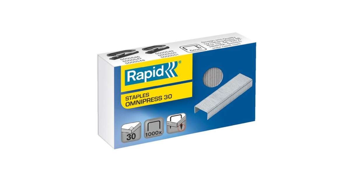 Ovaj paket od 1000 Rapid Omnipress 30 spajalica idealan je izbor za svaki ured i kućnu upotrebu. Zahvaljujući izvrsnoj kvaliteti i ojačanoj izvedbi, savršeno je prikladan za spajanje čak 30 listova odjednom.