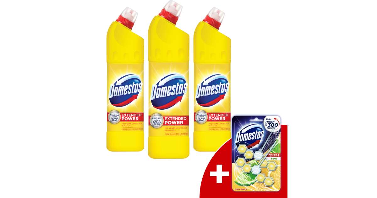 -Domestos Extended Power dezinfekcijsko tekuće sredstvo za čišćenje Citrus 3x750ml + Poklon Domestos WC štapić s opisom