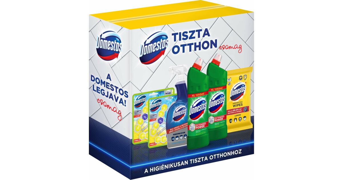 Uživaj u dugotrajnoj svježini i sigurnoj čistoći u svom domu s Domestos Tiszta Otthon paketom! 🏡