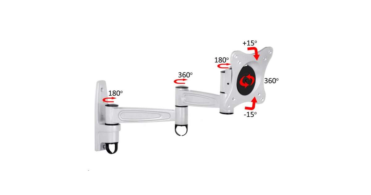 Ovaj zidni nosač je savršeno rješenje za sigurno i fleksibilno postavljanje LCD televizora i monitora veličine od 15 do 32 inča. Zahvaljujući 360° rotaciji i mogućnosti nagiba, uvijek ćete imati idealan kut gledanja.