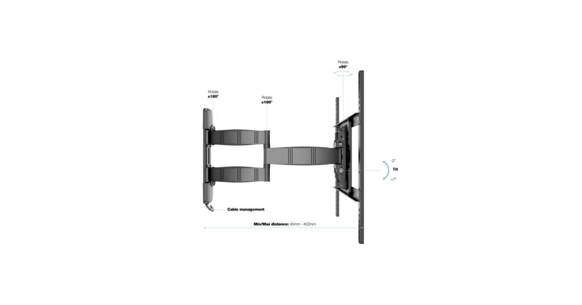 Ovaj Multibrackets VESA zidni držač za TV idealno je rješenje za montažu televizora veličine ekrana od 32 do 50 inča na zid. Zahvaljujući fleksibilnoj ruci, ekran se lako naginje i okreće, osiguravajući uvijek savršen kut gledanja. Stabilna konstrukcija i nosivost od 25 kg jamče sigurnu uporabu.