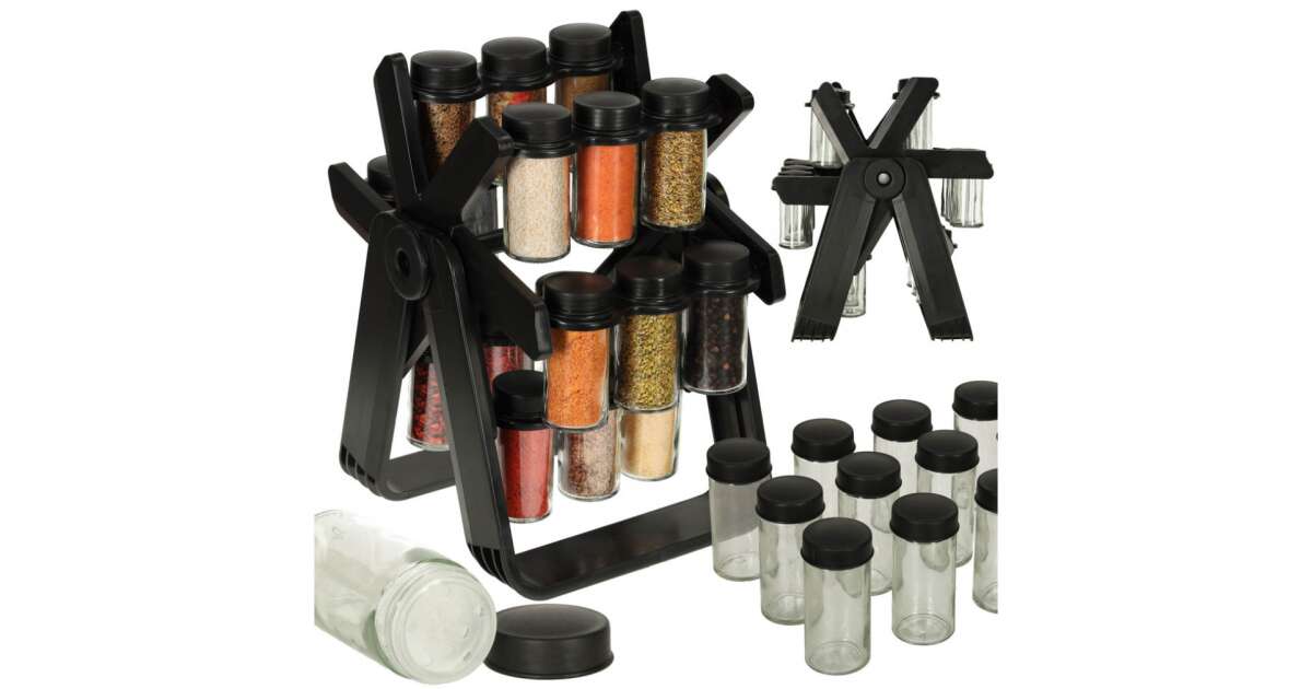 Rotirajući stalak za začine s 18 staklenih posuda: Savršena organizacija začina u kuhinji 🌿