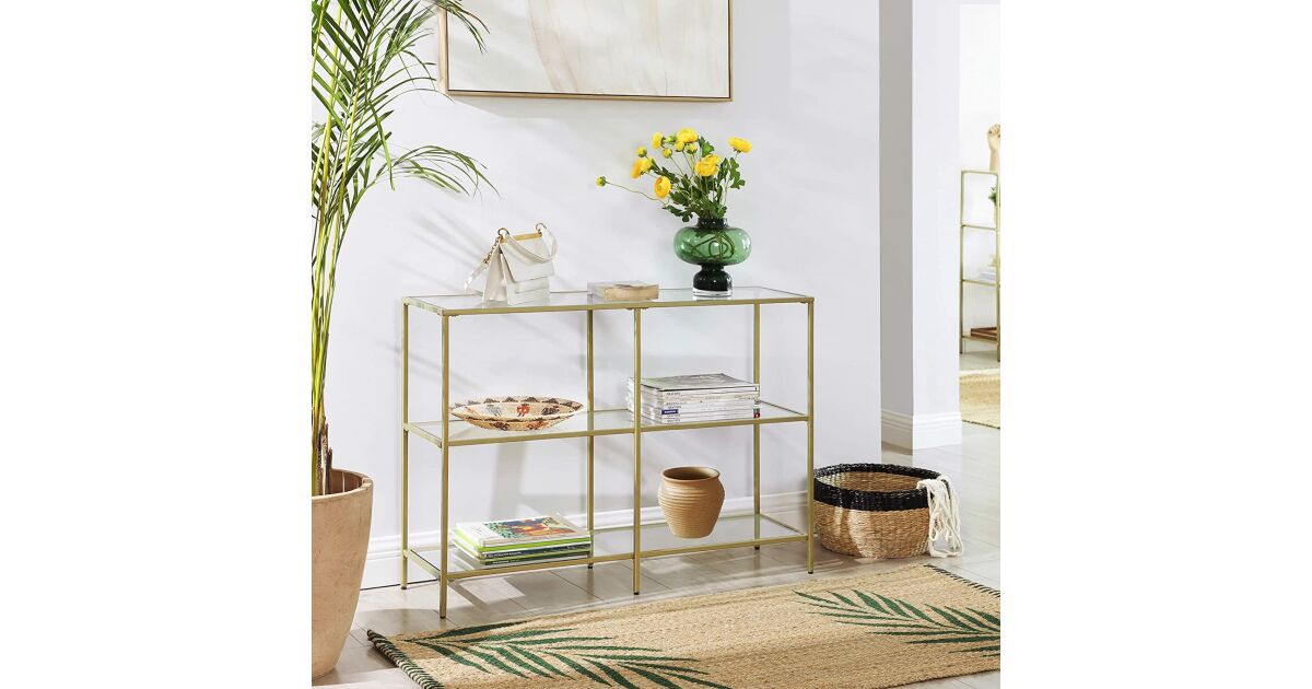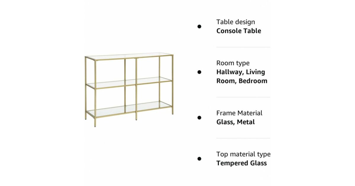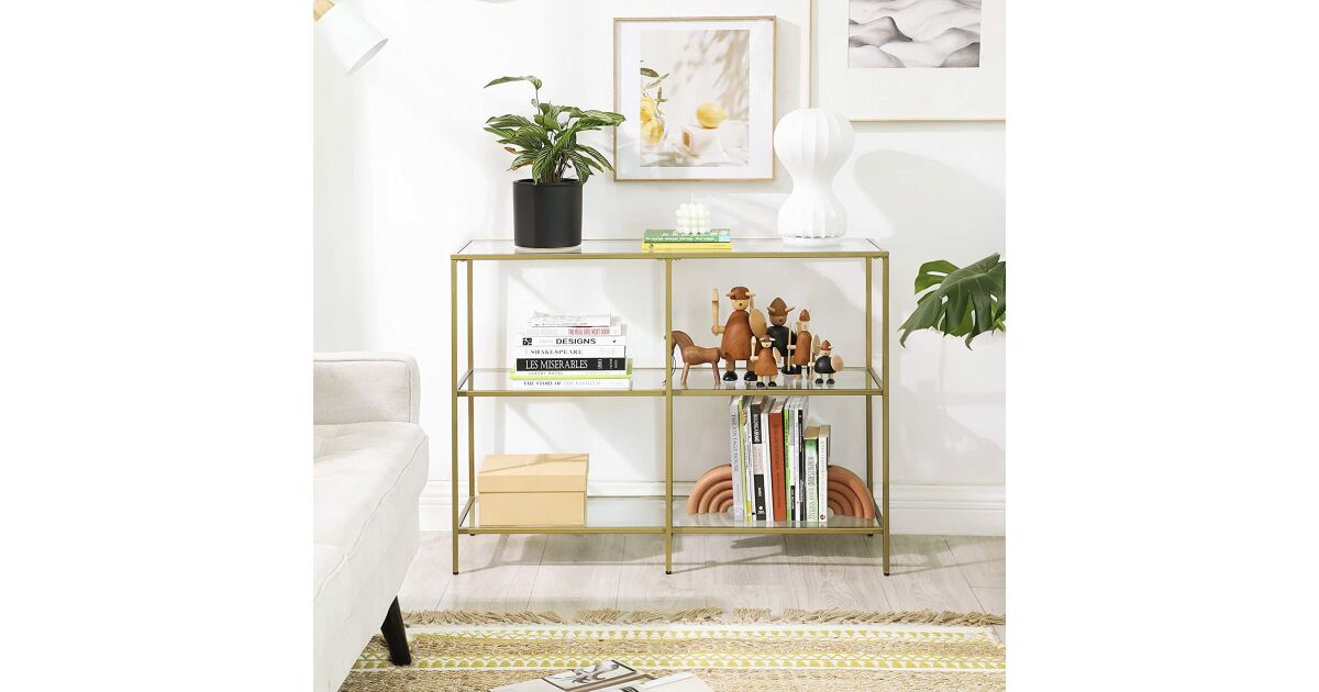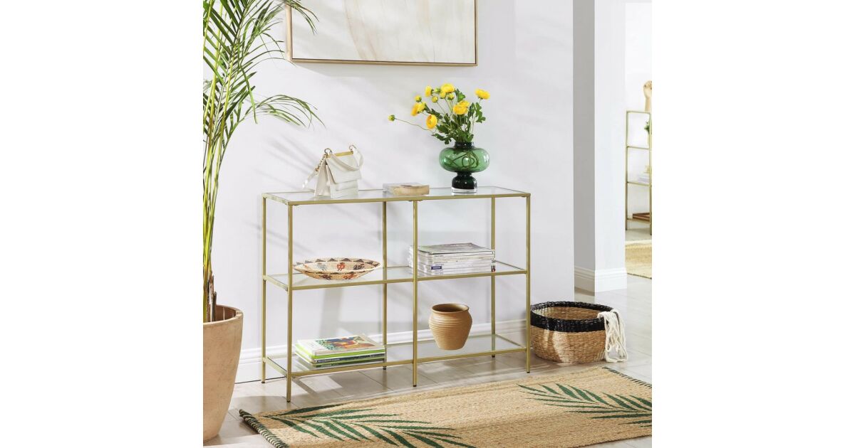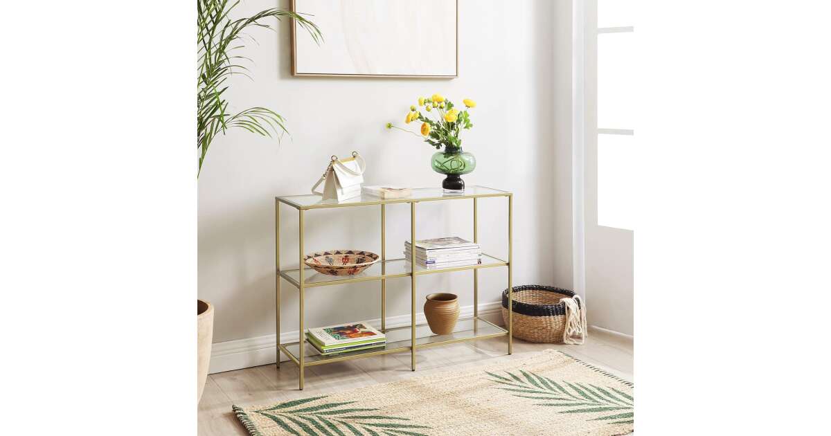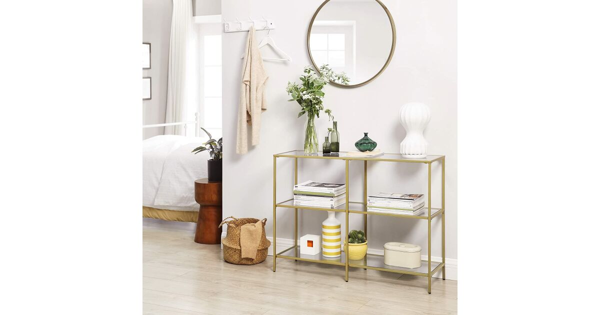 VASAGLE Elegantni konzolni stol za hodnik: Zlatni metal i staklo, s 3 police ✨