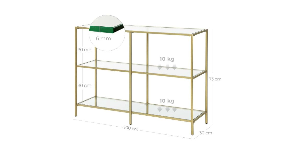 -Konzolni stol od kaljenog stakla s 2 police, 100 x 73 x 30 cm, zlatni | VASAGLE s opisom
