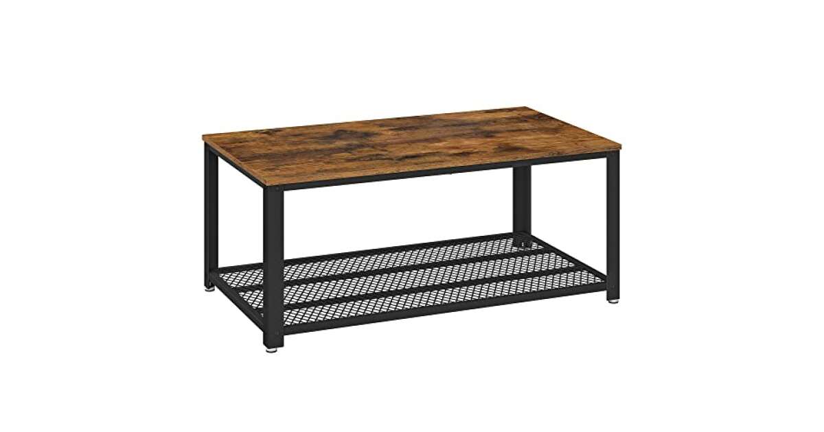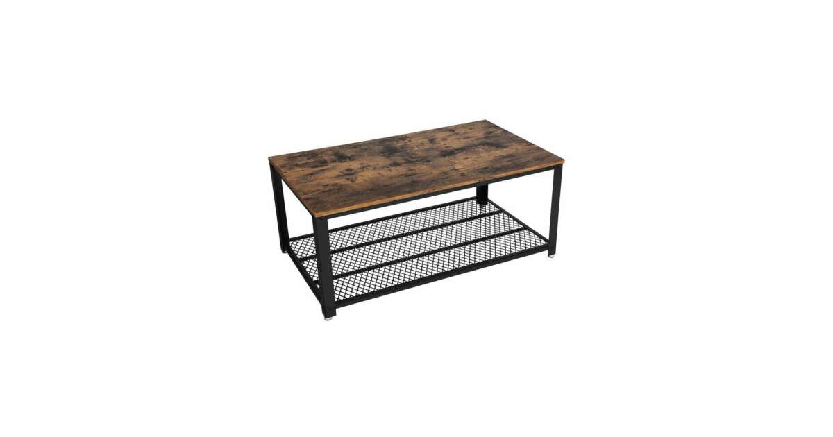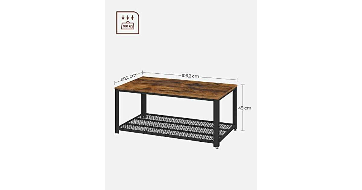 Stol za kavu s rešetkastom policom 106,2 x 45 x 60,2 cm, rustikalno smeđi | VASAGLE s opisom