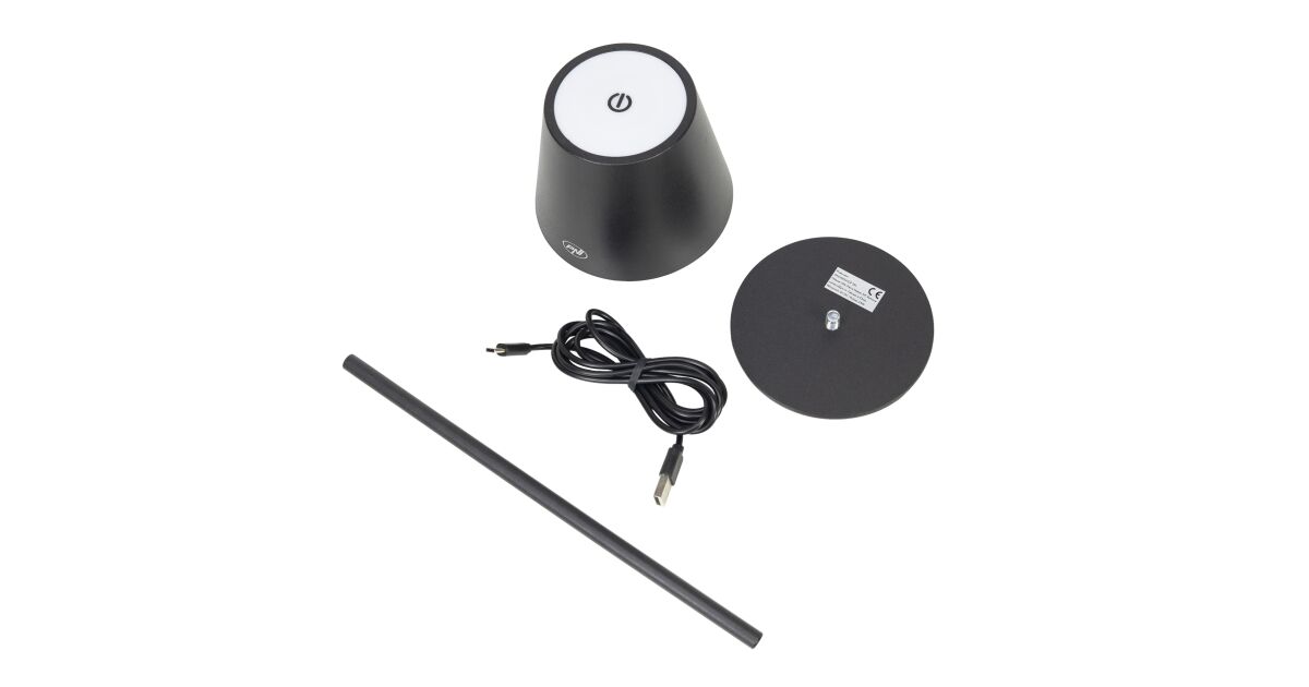 PNI LT04B restoranska svjetiljka s 2,5 W LED, baterijom od 1200 mAh, USB-C punjenjem, 150 lumena, toplo bijelo svjetlo 3000K, dodirni gumb, prigušivanje, crna boja