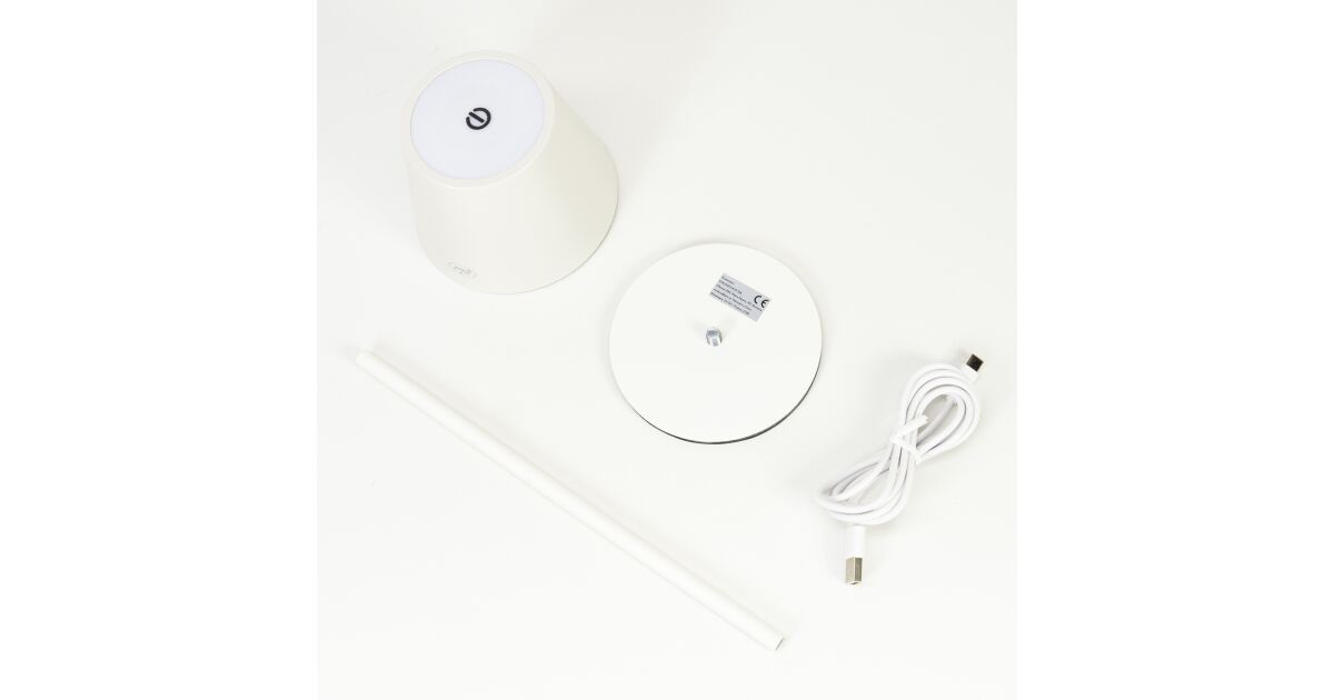 PNI LT04W stolna svjetiljka s LED 2.5W, baterija 1200 mAh, punjenje preko USB-C, 150 lumena, toplo bijelo svjetlo 3000K, tipka na dodir, mogućnost prigušivanja, boja Bijela s opisom