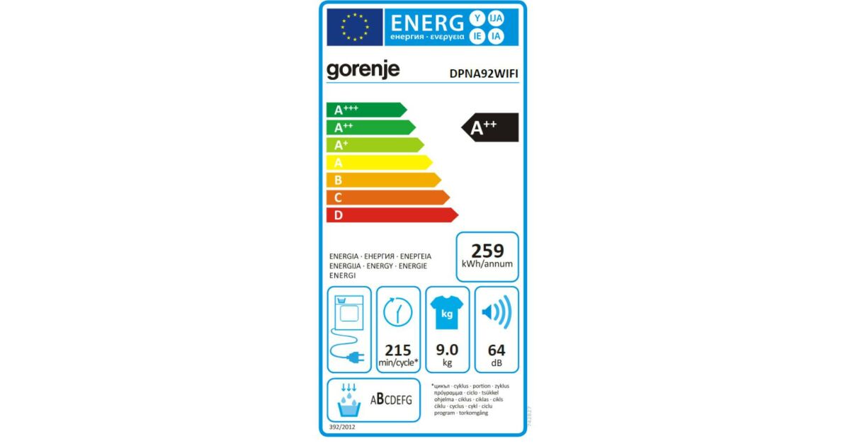 -Gorenje DPNA92WIFI Toplinska pumpa sušilica rublja, 9 kg, 15 programa, NatureDry, ConnectLife, A++ energetska klasa (742827)