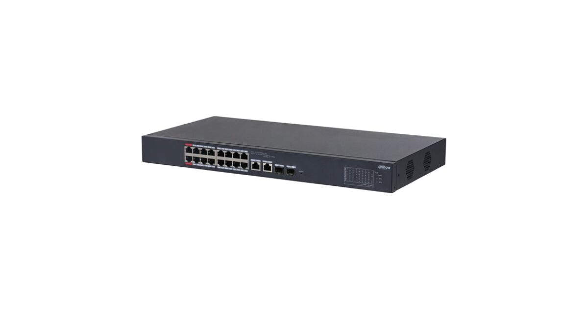 Dahua switch PoE - CS4218-16ET-240 (Cloud menedzsment; 16x 100Mbps at/af PoE; 2x 1Gbps; 2x 1Gbps SFP port; 240W PoE) s opisom