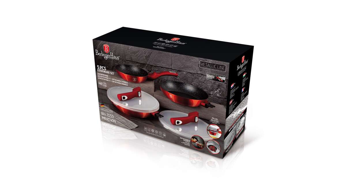 Berlinger Haus Metallic Line Set tava: 5 dijelova, s odvojivom drškom, bordo 🍷