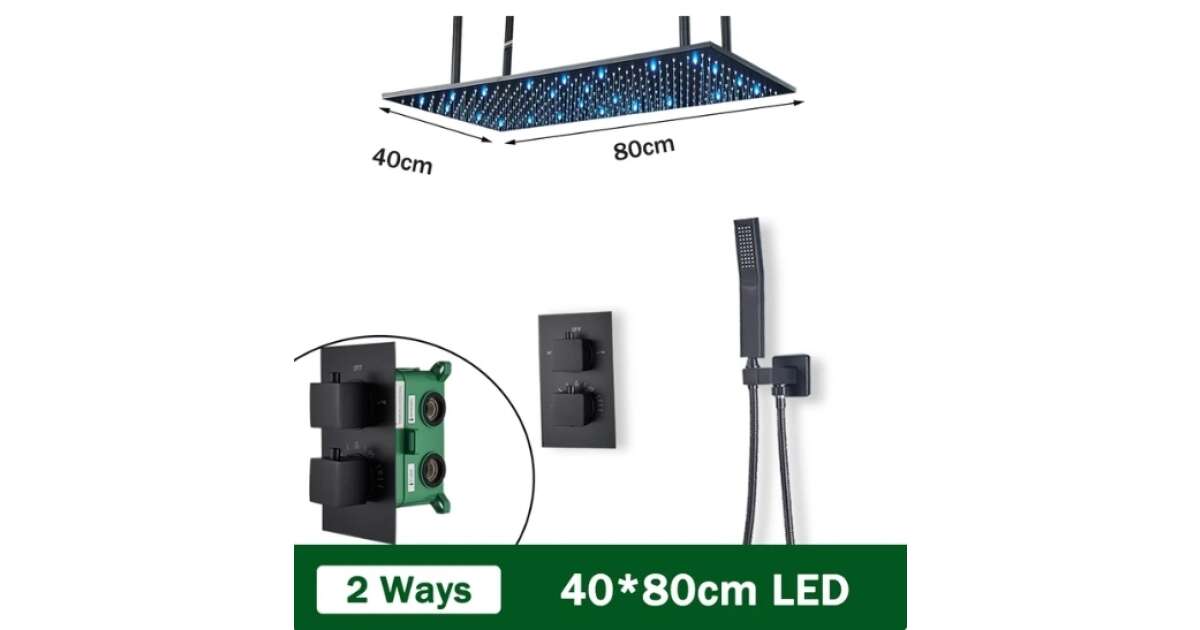 Set tuš slavine, Blackswan, tip M264, mat crni model, s dvosmjernim ventilom, LED rasvjetom, termostatom i montažom na strop, veličina 80 cm mišljenja