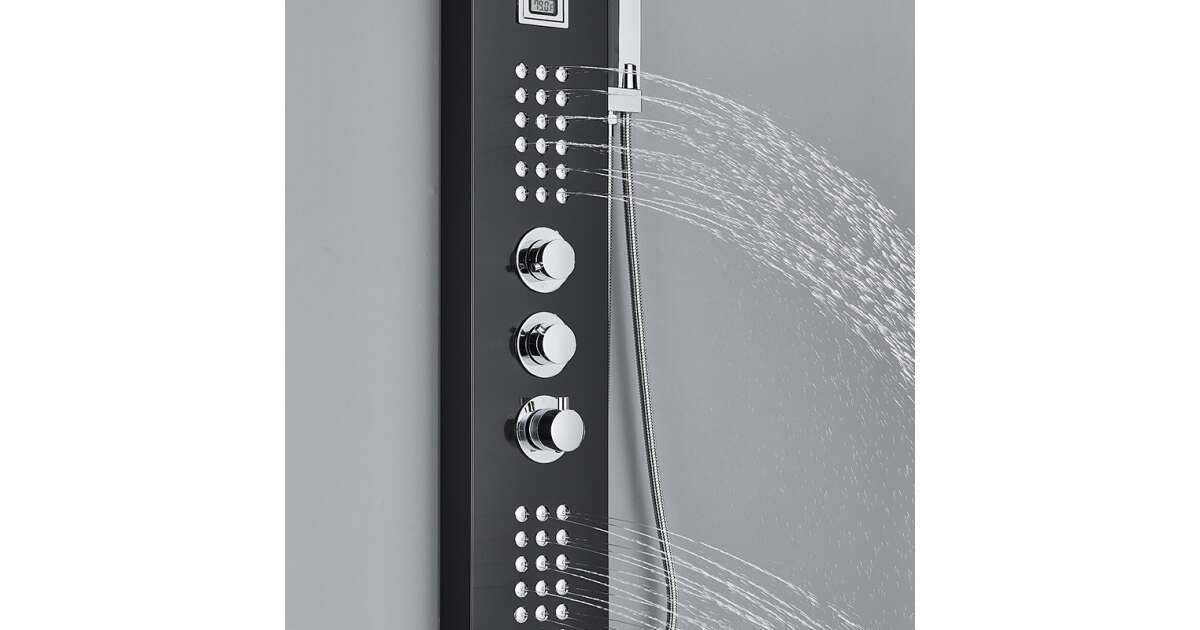 Tuš panel, Blackswan, tip M1047, crni model sa slavinom, termostatom i SPA funkcijom, veličina 122 cm s opisom