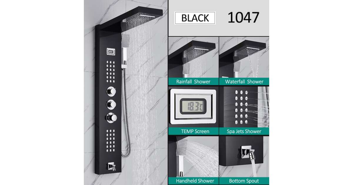 Tuš panel, Blackswan, tip M1047, crni model sa slavinom, termostatom i SPA funkcijom, veličina 122 cm