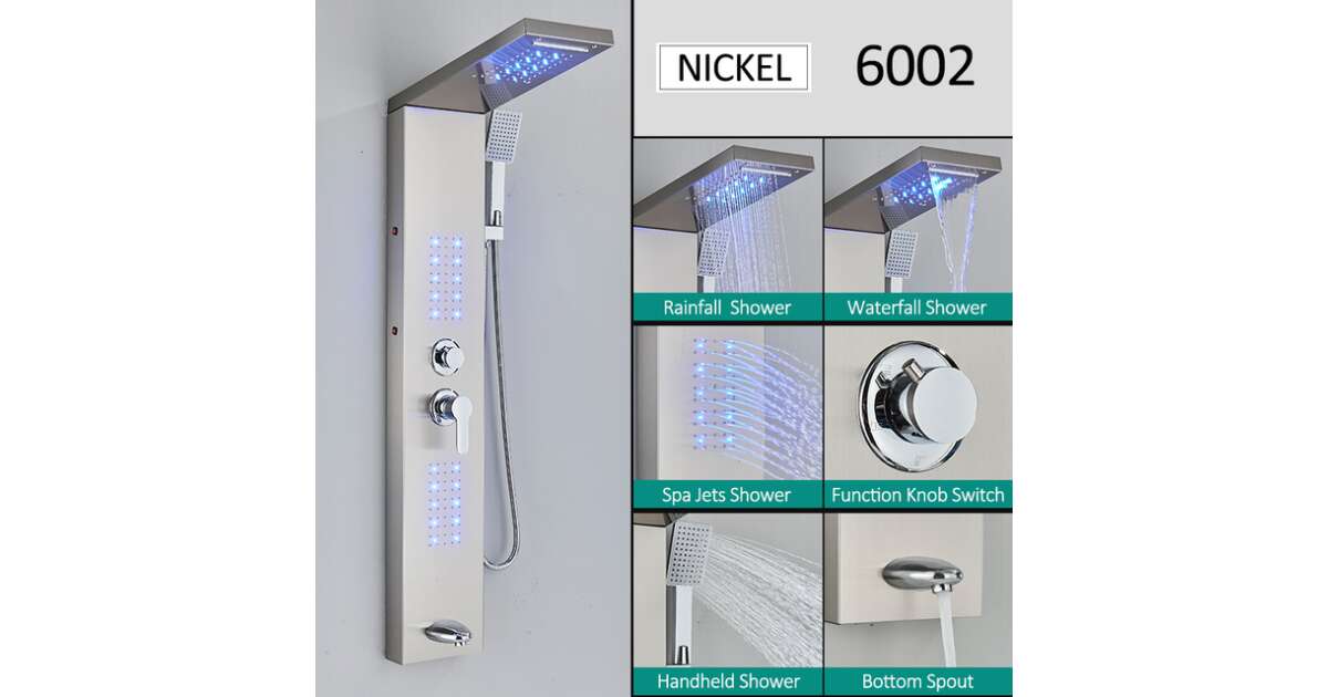 Tuš panel, model s LED i spa funkcijama, boje nikla.