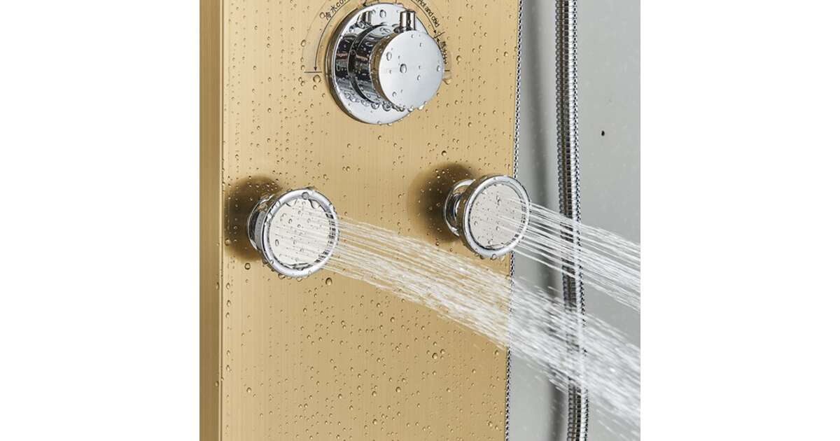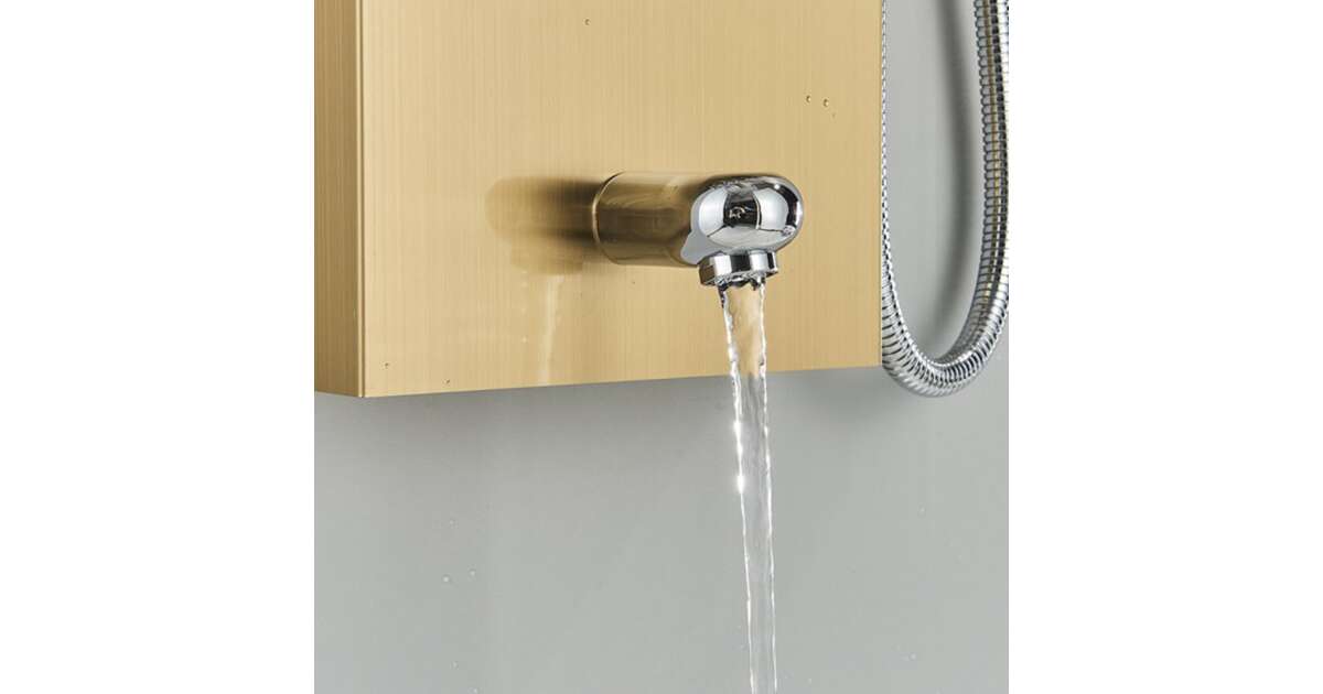 Tuš panel, model s LED i spa funkcijama, zlatne boje.
