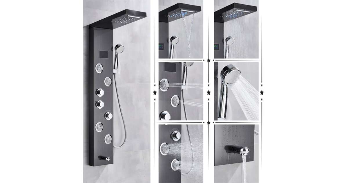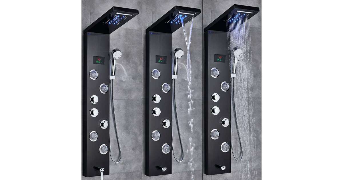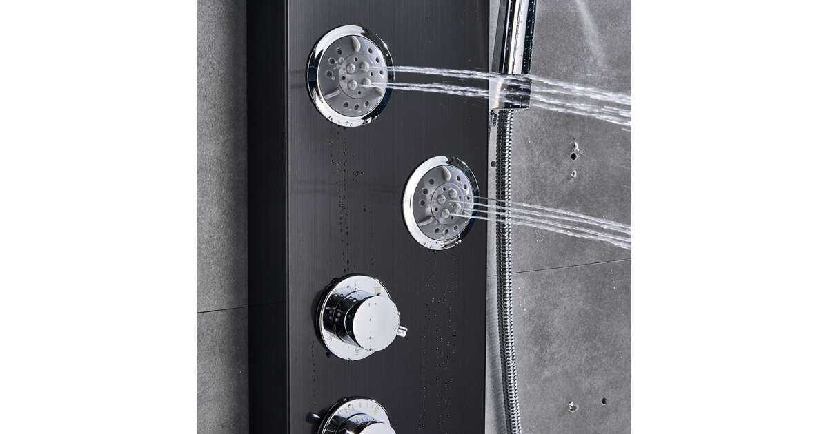 Tuš panel, model sa spa funkcijama, u crnoj boji.