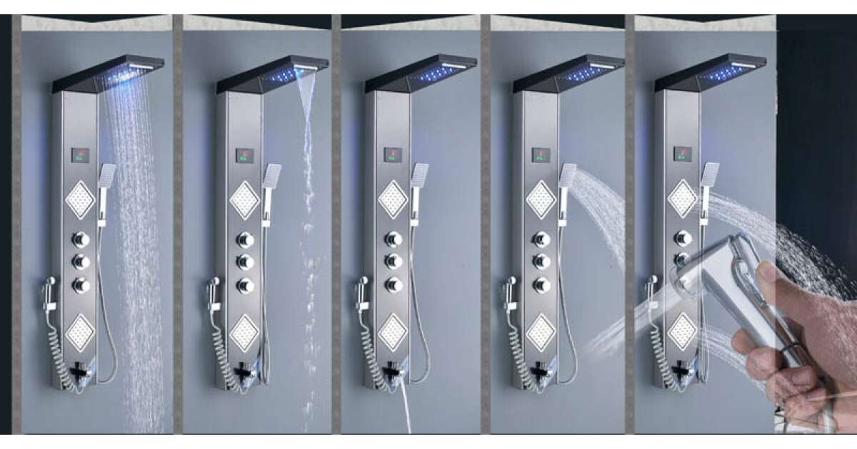 Tuš panel, model sa spa funkcijama, u crnoj boji.