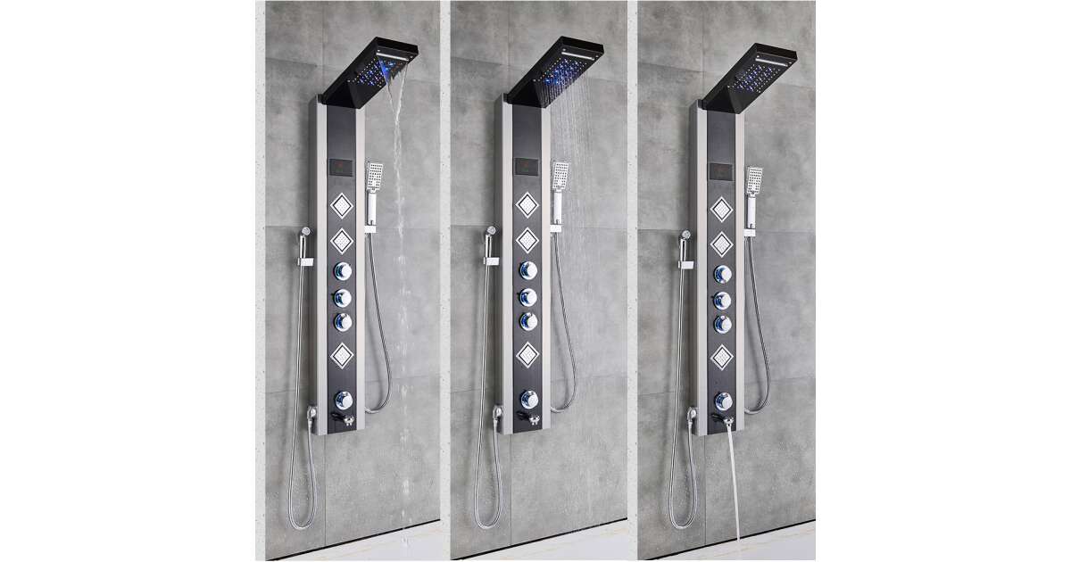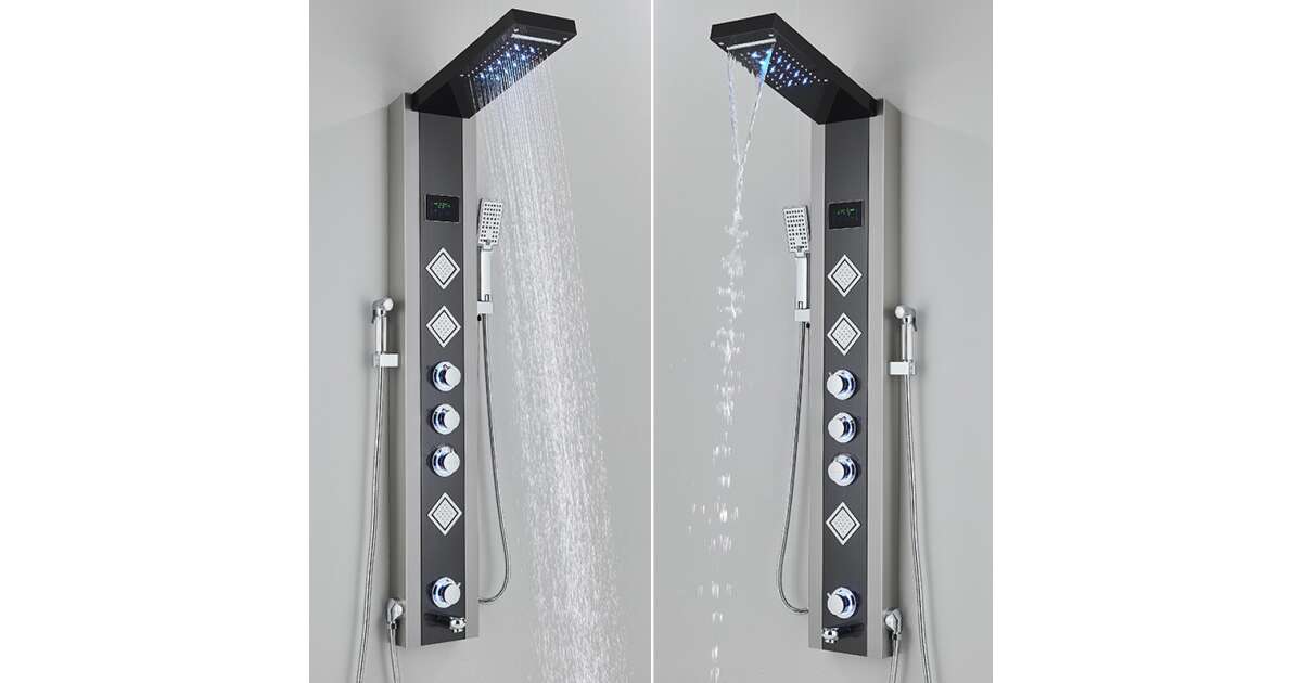 Tuš panel, model sa spa funkcijama, u crnoj boji.