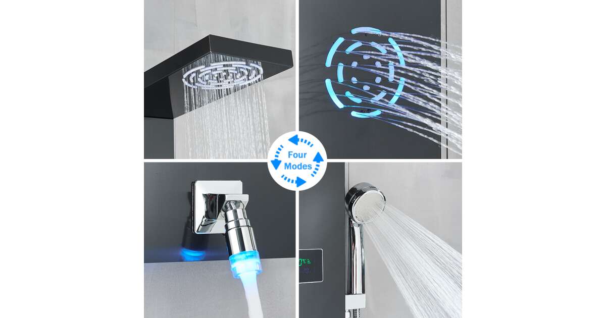 Tuš panel, Blackswan, tip M9008, crni model s LED-om, digitalnim zaslonom, slavinom i SPA funkcijama, veličina 114 cm