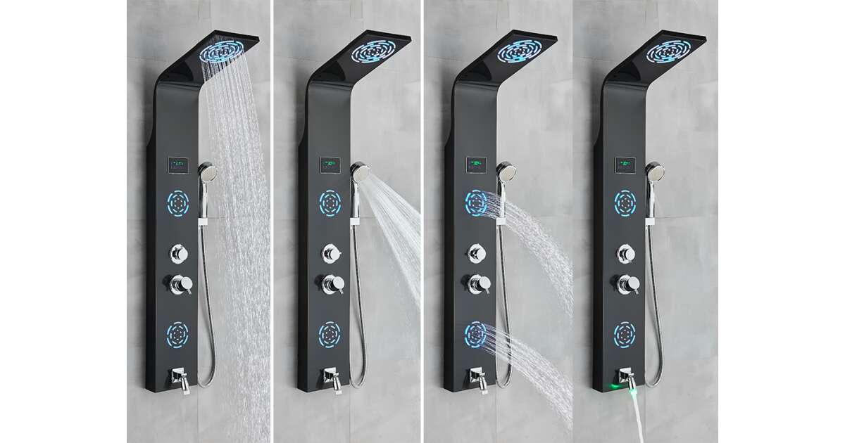 Tuš panel, model sa spa funkcijama, u crnoj boji.