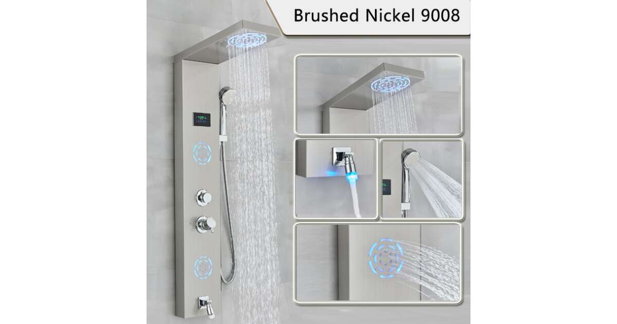 Tuš panel, Blackswan, tip M9008 niklani model s LED-om, digitalnim zaslonom, slavinom i SPA funkcijama, veličina 114 cm