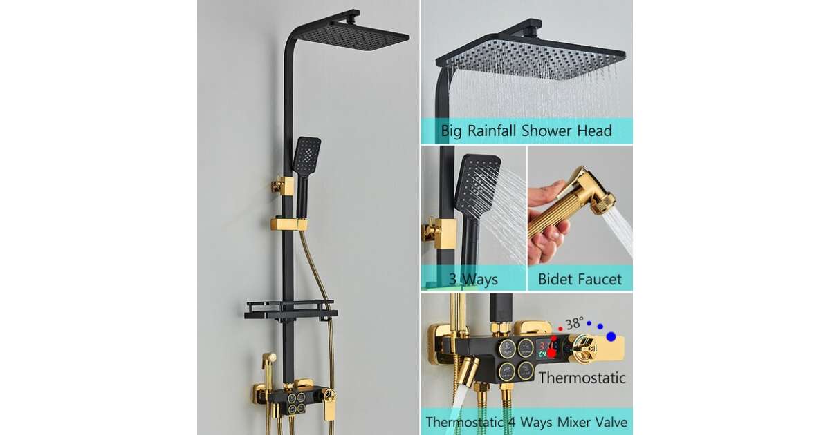 Tuš stup, Blackswan, tip M140, podesivi crno/zlatni model, s termostatom, pomičnom slavinom, tušem visokog tlaka i digitalnim zaslonom, veličina 110 cm mišljenja