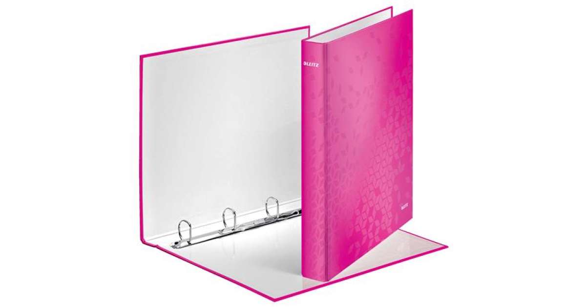 LEITZ Zvezdasti notes, 4 prstena, D-oblika, 40 mm, A4 Maxi, karton, LEITZ "Wow", ružičasta mišljenja