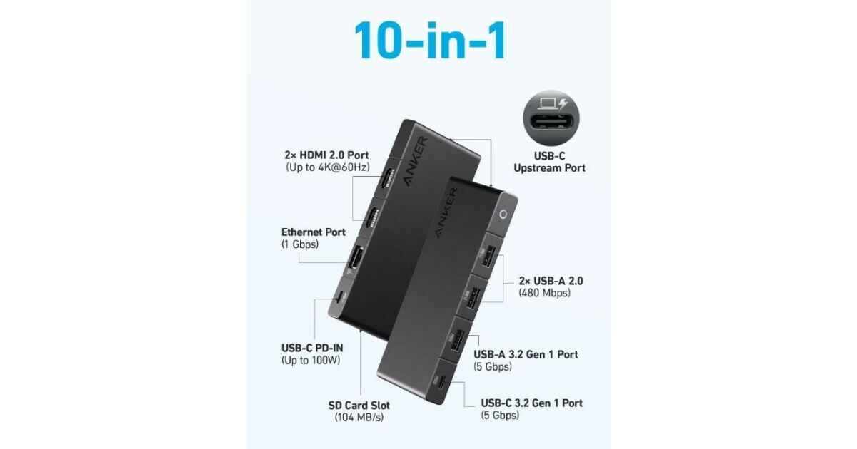 Anker 10 u 1 USB-C Hub: Dva 4K HDMI zaslona i više portova 🖥️