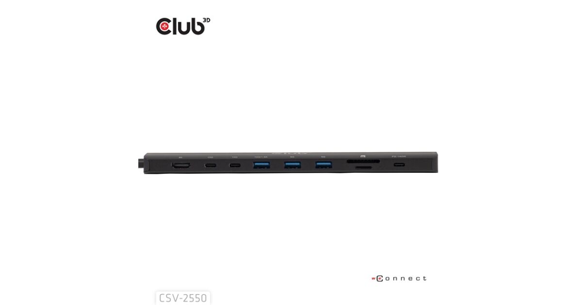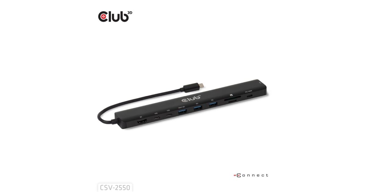 Club 3D USB Hub, CSV-2550 (USB-C to 3xUSB-C, 3xUSB-A, RJ45, SD/MicroSD, 140W PD, HDMI, 8K30hz) s opisom
