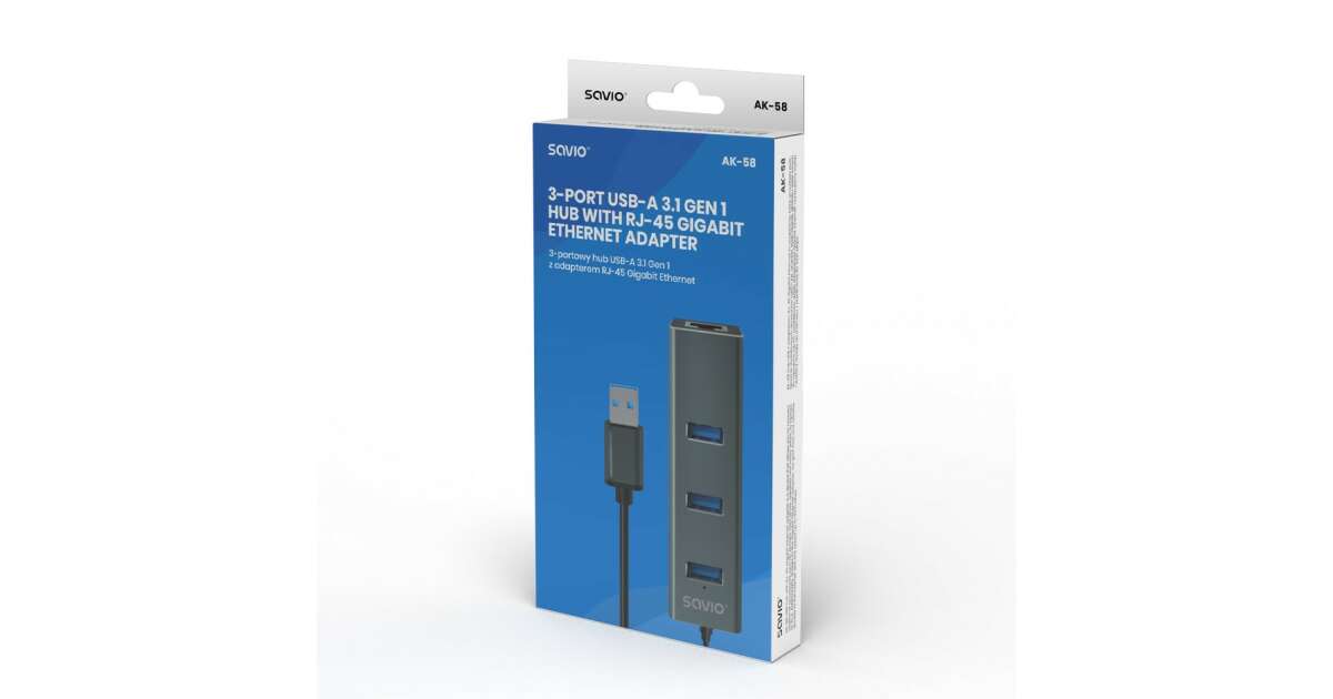 Savio AK-58 USB 3.1 Hub: 3 USB-A porta + Gigabit Ethernet 💻🚀