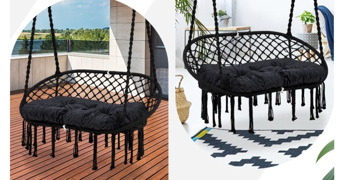 Uživajte u udobnosti i odmoru! Viseća ljuljačka je savršeno mjesto za opuštanje, čitanje ili ugodan razgovor. S mekanim jastucima odmor će biti još ugodniji. Jednostavna, crna boja lako se uklapa u svaki interijer.