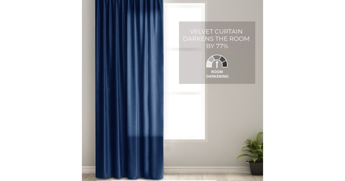 Ova zatamnjujuća zavjesa nije samo praktičan dodatak, već i stilski dekorativni element koji čini prostor ugodnijim i intimnijim. Kombinacija baršunastog materijala i elegantne indigo plave boje daje prostoru osjećaj luksuza.