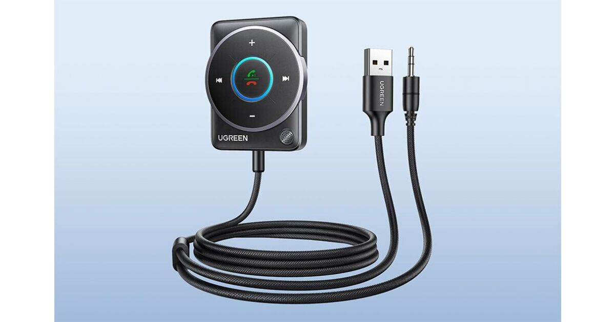 Ugreen Adapter Bluetooth 5.4 UGREEN CM723, USB-A + mini jack 3.5mm, wbudowany mikrofon czarny