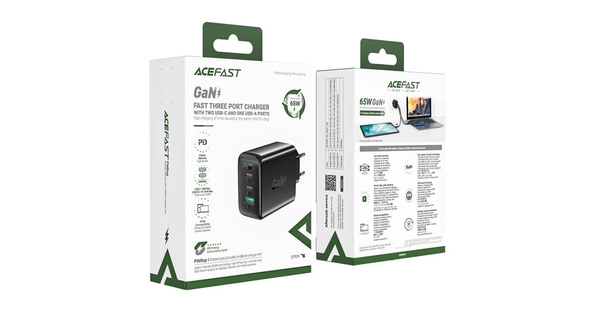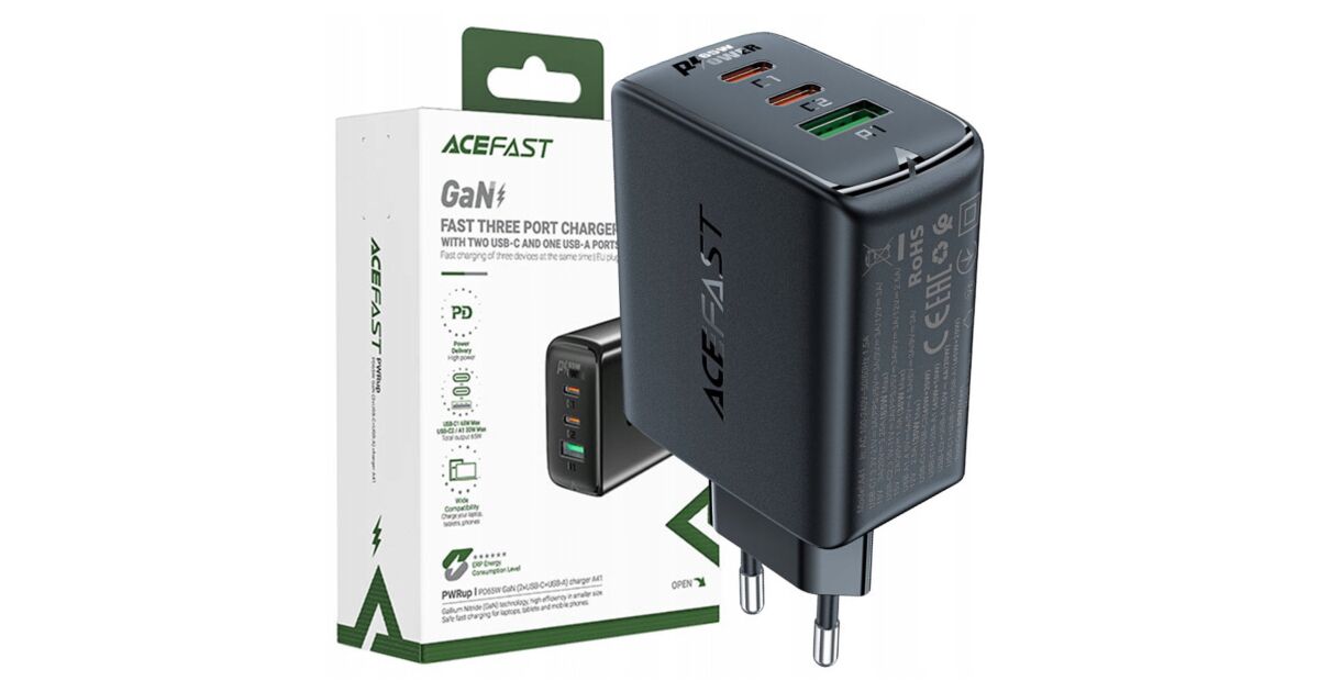 Acefast szybka ładowarka sieciowa GaN (2xUSB-C / USB-A) PPS / PD / QC4+ 65W czarna (A41) recenzje