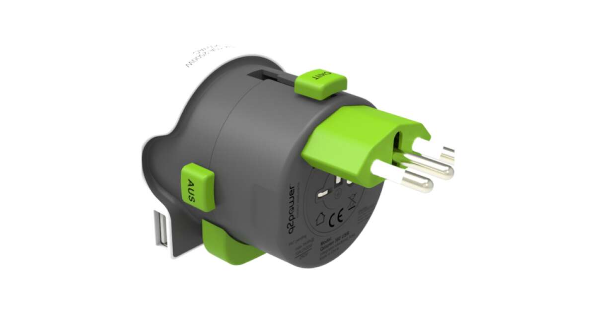 Adapter podróżny Q2POWER 1.100190, USB ze świata do Włoch, kraj wyjazdu: AUS/CHINY, IT, UK, CH, BRAZYLIA, USA, EURO, kraj docelowy: IT, port USB
