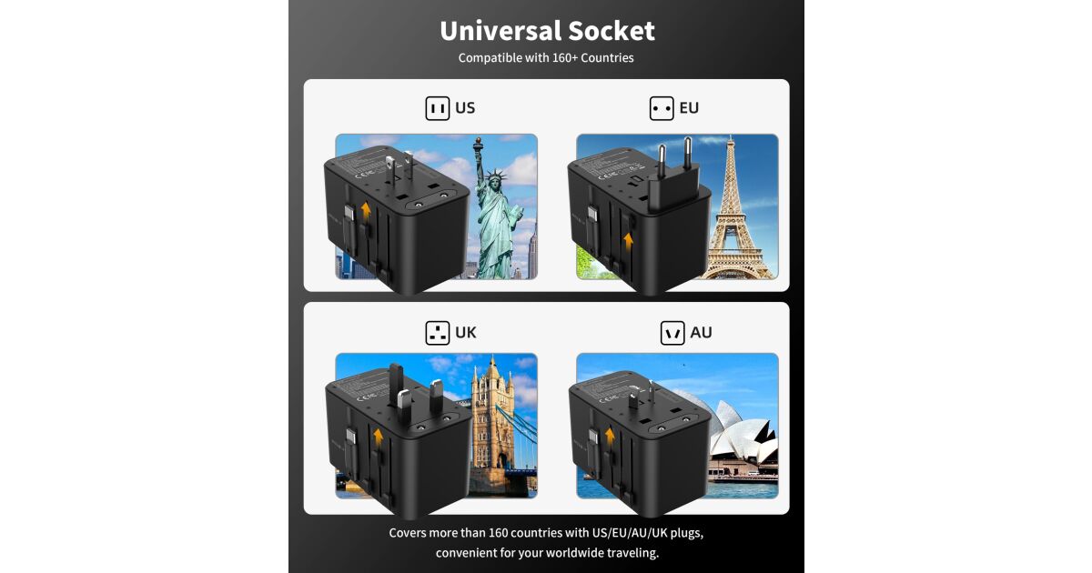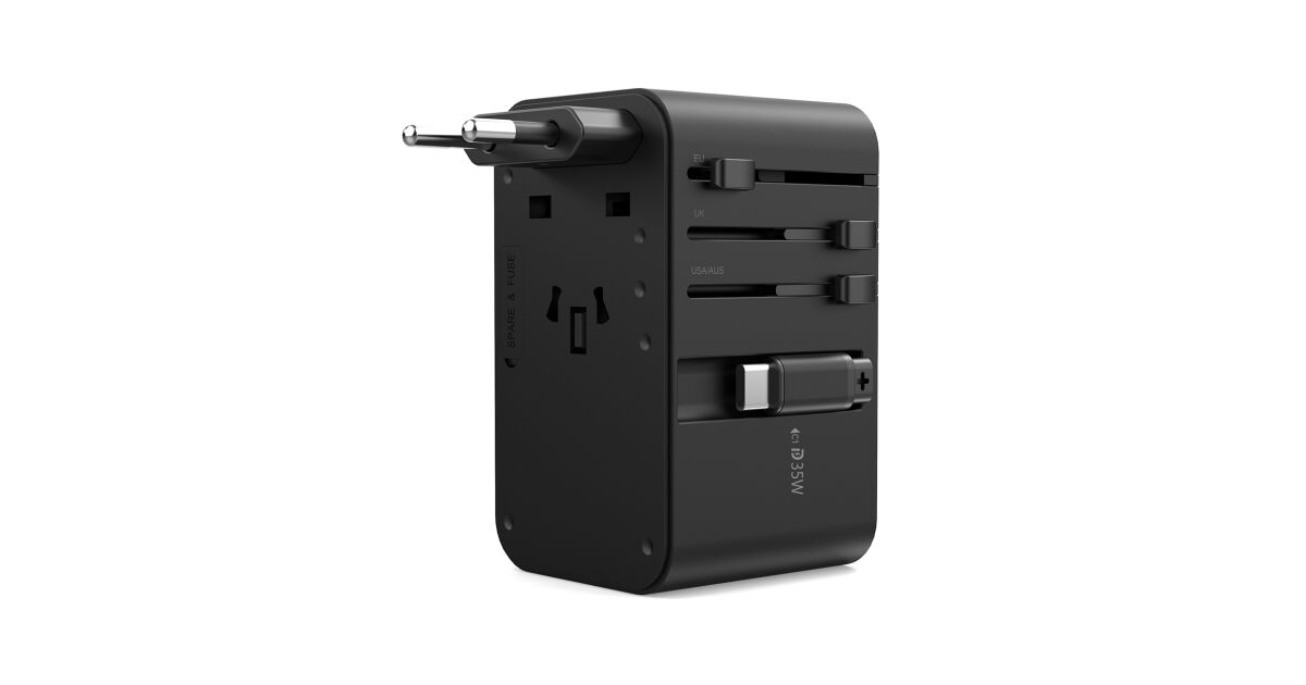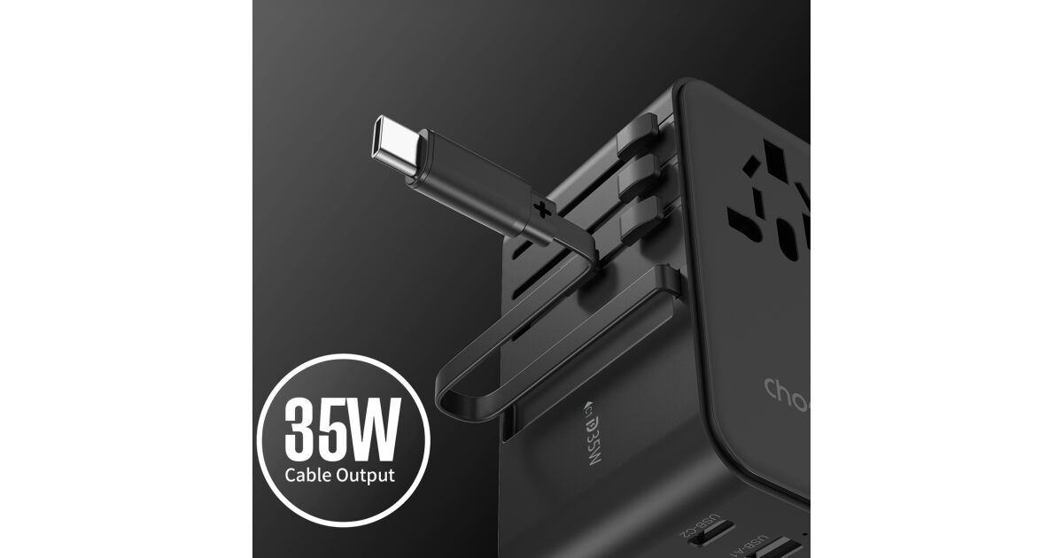Choetech Adapter podróżny Choetech PD5020 35W EU / US / AUS / UK z wbudowanym kablem USB-C - czarny