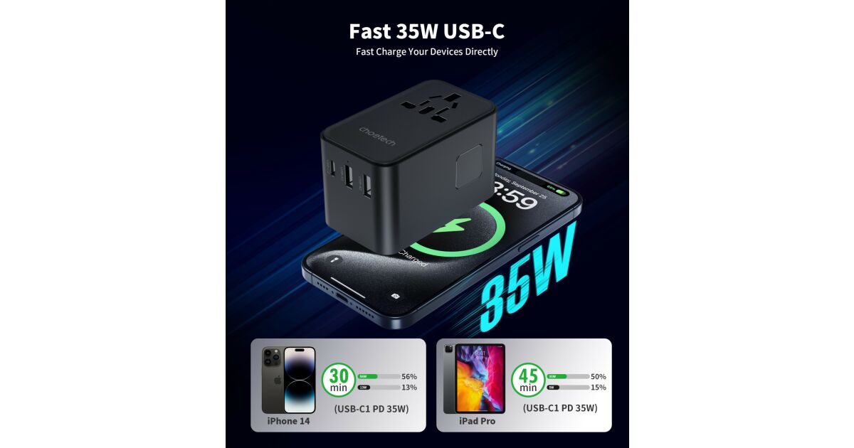 .flex-container {display: flex; padding: 3%;} .flex-item {flex: 1; padding: 2%;} .content-image {max-width: 100%;height: auto;}Przenośny adapter podróżny Choetech PD5020 35W EU US AUS UK z kablem USB-C - czarnyPrzenośny adapter podróżny Choetech PD5020 o mocy do 35W z wtyczkami EU / US / AUS / UK i wbudowanym kablem USB-C - czarny Podróżowanie po świecie stanie się jeszcze łatwiejsze dzięki przenośnemu adapterowi podróżnemu Choetech PD5020. Ten mały i wszechstronny adapter umożliwia zasilanie w ponad 160 krajach dzięki wtyczkom EU, US, AUS i UK. Jego moc wynosząca do 35W oraz technologia GaN sprawiają, że urządzenia ładują się szybko, a jednocześnie adapter zachowuje niewielkie rozmiary i wyższą efektywność chłodzenia. Ponadto umożliwia ładowanie aż pięciu urządzeń jednocześnie. Posiada również zaawansowane systemy ochrony urządzeń. Specyfikacja: Marka: Choetech Model: Choetech PD5020 Adapter: Maksymalny prąd: 100-240 V ~ 50/60 Hz 0,8 A Kompatybilność: EU, US, AUS, UK Złącza: Port USB-C 2 porty USB-A Wbudowany kabel USB-C Prąd wyjściowy: USB-C1: 5 V - 3 A, 9 V - 3 A, 12 V - 2,91 A, 15 V - 2,33 A, 20 V - 1,75 A USB-C2: 5 V - 3 A USB-A1 / A2: 5 V - 2,4 A Moc maksymalna: 35 W Cechy dodatkowe: wbudowany kabel do ładowania (USB-C), technologia GaN Standard szybkiego ładowania: Power Delivery Materiał: tworzywo sztuczne Kolor: czarny Najważniejsze zalety przenośnego adaptera podróżnego Choetech PD5020: Umożliwia szybkie i efektywne ładowanie urządzeń. Dzięki technologii GaN i mocy do 35 W adapter może naładować na przykład baterię iPhone'a 14 do 56% w zaledwie 30 minut, a iPada Pro do 50% w 45 minut. Zapewnia zasilanie w ponad 160 krajach. Adapter jest wyposażony w wtyczki EU, US, AUS i UK, co czyni go idealnym towarzyszem podróży w każdym miejscu na świecie. Umożliwia jednoczesne ładowanie pięciu urządzeń. Posiada port USB-C, dwa porty USB-A, wbudowany kabel USB-C oraz uniwersalne gniazdo. Chroni urządzenia dzięki inteligentnym zabezpieczeniom. Posiada bezpiecznik 10A, który automatycznie odłącza zasilanie w przypadku przeciążenia, oraz ochronę przed zwarciem, przepięciem, przeciążeniem prądowym i przegrzaniem. Jest kompatybilny z szeroką gamą urządzeń. Obsługuje laptopy, telefony, tablety oraz inne urządzenia, takie jak AirPods, Apple Watch i Nintendo Switch. Szybkie ładowanie dzięki mocy 35W Nie tracisz więcej czasu na długie ładowanie! Przenośny adapter podróżny Choetech PD5020 o mocy 35W naładuje Twój iPhone 14 do 56% w zaledwie 30 minut, a iPad Pro do 50% w 45 minut. Technologia GaN zastosowana w tym adapterze nie tylko zwiększa szybkość ładowania, ale także poprawia efektywność energetyczną oraz chłodzenie urządzenia. Dzięki temu, nawet podczas intensywnego użytkowania adapter pozostaje chłodny i wydajny. Uniwersalność w ponad 160 krajach Bez względu na miejsce, do którego się wybierasz, przenośny adapter Choetech PD5020 zapewnia niezawodne zasilanie. Wyposażony w wtyczki EU, US, AUS i UK, adapter jest idealnym towarzyszem podróży. Nie musisz martwić się o kupowanie dodatkowych przejściówek, ponieważ ten jeden adapter zaspokoi wszystkie Twoje potrzeby zasilania na całym świecie. Jednoczesne ładowanie pięciu urządzeń Czy zdarza Ci się, że brakuje Ci gniazdek do ładowania wszystkich urządzeń? Z przenośnym adapterem Choetech PD5020 jest to przeszłość. Dzięki jednemu portowi USB-C, dwóm portom USB-A, wbudowanemu kablowi USB-C oraz uniwersalnemu gniazdu z łatwością naładujesz aż pięć urządzeń jednocześnie. Niezależnie od tego, czy to laptop, telefon, tablet czy inne gadżety - wszystkie będą naładowane jednym adapterem. Bezpieczne ładowanie dzięki inteligentnym zabezpieczeniom Przenośny adapter Choetech PD5020 jest wyposażony w szereg inteligentnych zabezpieczeń, takich jak bezpiecznik 10A, który automatycznie odłącza zasilanie w przypadku przeciążenia, oraz ochronę przed zwarciem, przepięciem, przeciążeniem prądowym oraz przegrzaniem. Dzięki tym funkcjom możesz mieć pewność, że Twoje urządzenia są chronione podczas ładowania. Szeroka kompatybilność z różnymi urządzeniami Przenośny adapter podróżny Choetech PD5020 to nie tylko doskonałe rozwiązanie dla podróżników, ale również idealny wybór do codziennego użytku. Jest kompatybilny z szeroką gamą urządzeń, w tym laptopami, telefonami, tabletami oraz różnymi gadżetami, takimi jak AirPods, Apple Watch czy Nintendo Switch. ID: 157661-uniw, -uniw EAN: 6932112106872 Kod producenta: 6932112106872 BC: ŁŚL Kolor: Czarny Maksymalne natężenie prądu: 3 A Moc maksymalna: 35 W Rodzaj wtyczki: US, EU, UK, AU Liczba złączy wyjściowych: 4 Rodzaj złącza: USB-C (żeński), USB-C (męski), USB-A (żeński) Standard szybkiego ładowania: PD (Power Delivery) Materiał: Tworzywo sztuczne Rodzaj ładowarki: Sieciowa CN: 85044030, 85076000 Tłumaczenia: Angielski - Nazwa, Angielski - Opis krótki, Angielski - Opis długi, Niemiecki - Nazwa, Niemiecki - Opis krótki, Niemiecki - Opis długi