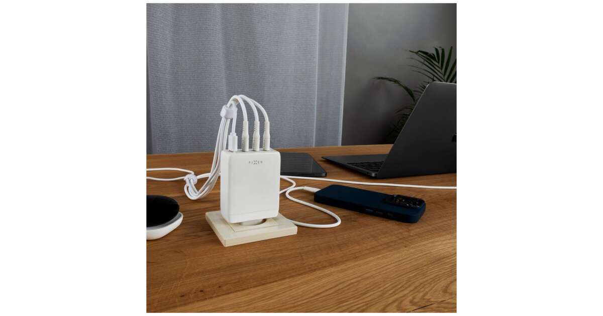 .flex-container {display: flex; padding: 3%;} .flex-item {flex: 1; padding: 2%;} .content-image {max-width: 100%;height: auto;}Ładowarka sieciowa Fixed Gan100 Charger 100W Uniwersalna / USB-C / USB-A Wersja kolorystyczna: Biała Wyjścia: 3x USB-C, USB-A Szybkie ładowanie Power Delivery 3.0 Moc wyjściowa: 100W Kod produktu: 8591680157259 Kod producenta:8591680157259 Kompaktowa budowa Ładowarka sieciowa FIXED z nową technologią GaN oferuje wysoką moc wyjściową 100 W przy małych wymiarach adaptera. Zapewni szybkie i bezpieczne ładowanie Twojego nowoczesnego laptopa, tabletu, smartfona i innych urządzeń elektronicznych. Technologia GaN to rewolucja w świecie ładowarek - obwody krzemowe wewnątrz ładowarki zostały zastąpione azotkiem galu (GaN), co pozwala zmniejszyć wymiary ładowarki przy jednoczesnym zwiększeniu wydajności ładowania.Nawet 4 urządzenia jednocześnie Ładowarka FIXED posiada 3 porty USB-C oraz port USB-A o łącznej mocy 100W. Port USB-C z obsługą Power Delivery 3.0 przeznaczony jest przede wszystkim do ładowania laptopa. Adapter sam rozpoznaje podłączone urządzenie i dostarcza mu odpowiednią moc zgodnie z jego potrzebami. Ładowarka posiada 3 porty: USB-C i USB-A, a jej maksymalne obciążenie mocy wynosi do 100W. Parametry wyjściowe: wyjście USB-C1/C2: 5V/3A, 9V/3A, 12V/3A, 15V/3A, 20V/5A (max. 100W) PPS: 3,3V21V /5A wyjście USB-C3: 5V/3A, 9V/3A, 12V/3A, 15V/3A, 20V/1,5A (maks. 30W) PPS: 3,3-11V/3A wyjście USB-A1: 5V/3A, 5V/4,5A, 4,5V/5A, 9V/3A, 12V/2,5A, 15V2A, 20V/1,5A (maks. 30W) Wyjście przy podłączeniu wielu portów: max. moc wyjściowa (USB-C1) + (USB-C2): 65W + 30W (maks. 95W) max. wyjście (USB-C3) + (USB-A): 5V/3A (maks. 15W) max. moc wyjściowa (USB-C1/C2) + (C3/USB-A): 65W + 30W (maks. 95W) max. wyjście (USB-C1) + (USB-C2) + (USB-A): 45W + 30W + 18W (maks. 93W) max. moc wyjściowa (USB-C1) + (USB-C2) + (USB-C3): 45W + 30W + 20W (maks. 95W) max. wyjście (USB-C1) + (USB-C2) + (USB-C3) + (USB-A): 45W + 30W + 5V/3A (max. 90W) Moc wejściowa: AC 100-240V, 50/60Hz, 2A Max Bezpieczeństwo użytkowania Z ładowarką FIXED GaN nie musisz się martwić, że zabraknie Ci energii w urządzeniu, niezależnie od tego, czy jesteś w domu, w biurze, czy w podróży. Adapter sam rozpoznaje podłączone urządzenie i odpowiednio dostarcza mu odpowiednią moc zgodnie z jego potrzebami. Ładowanie jest bezpieczne i nie ma ryzyka przegrzania lub przepięcia.Rodzaj ładowarki: Adapter sieciowy;Liczba wyjść USB-A: 1;Rodzaj złącza kabla: USB-C;Quick Charge: Tak;Kolor: Biały;Liczba wyjść USB-C: 3;Liczba ładowanych urządzeń: 4;Moc ładowania: 100 W