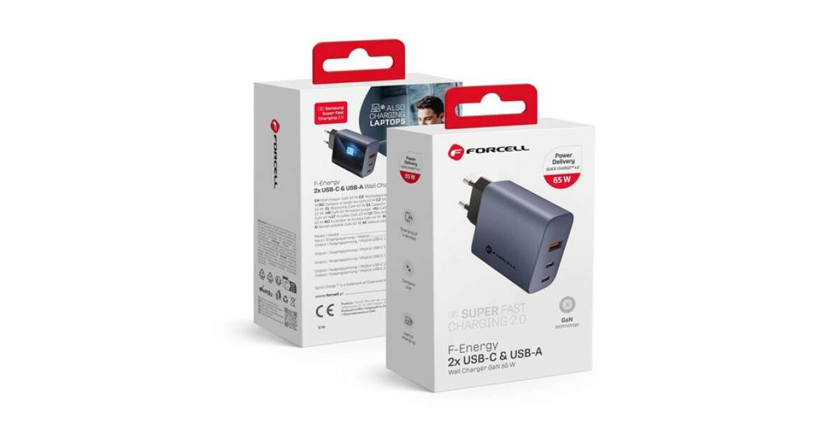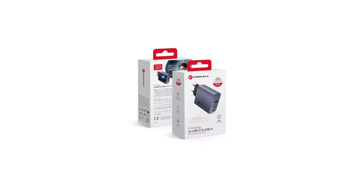 Forcell F-Energy Ładowarka Sieciowa GaN - 65W z portami: 2x USB C i USB A z ładowaniem PD i QC 4.0
