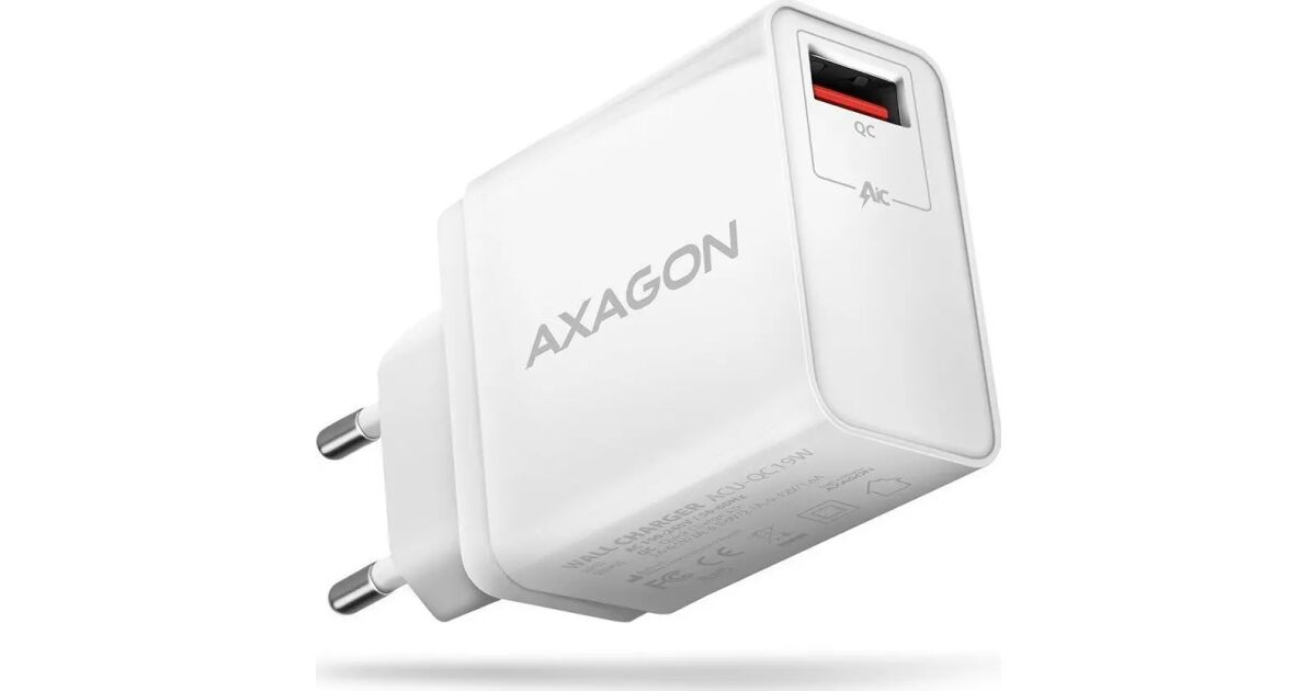 Ładowarka Axagon ACU-QC19W Ładowarka sieciowa QC 19W, 1x port USB-A, QC3.AFC/FCP/SMART, Biała