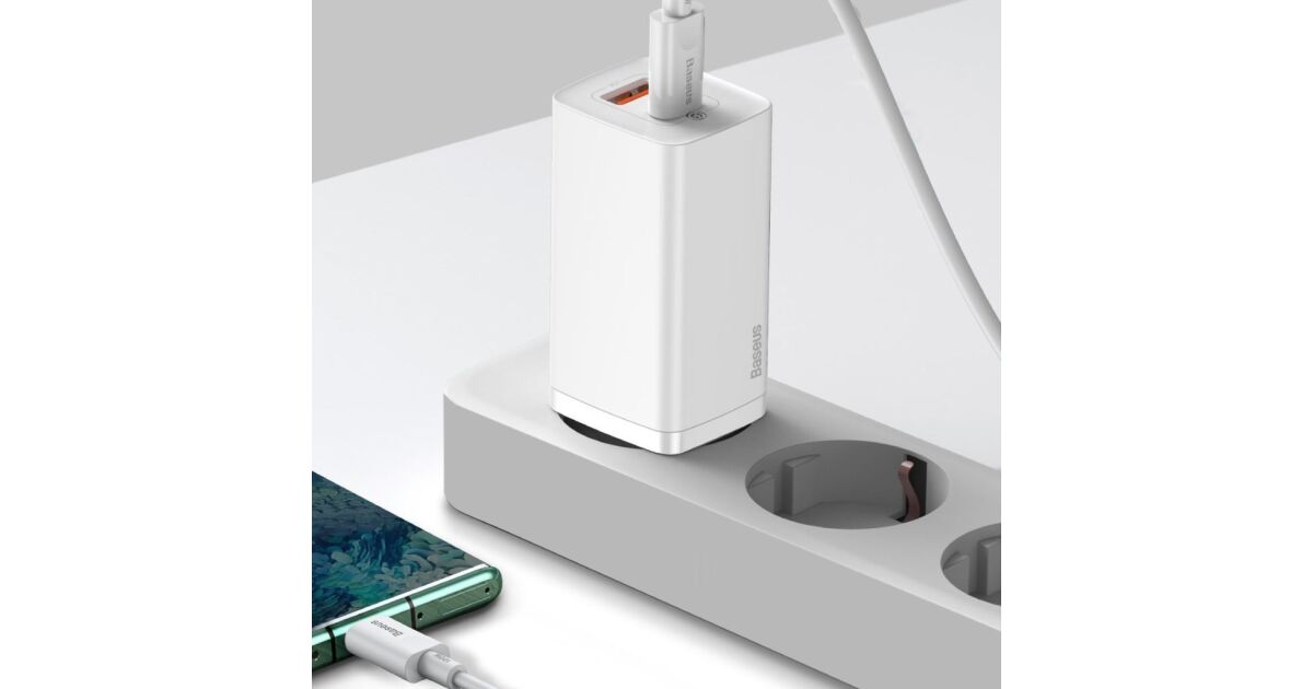 Ta kompaktowa, biała ładowarka sieciowa Baseus GaN2 Lite o mocy 65W pozwala na jednoczesne ładowanie dwóch urządzeń przez porty USB-A i USB-C. Dzięki najnowszej technologii GaN jest mniejsza, niż tradycyjne ładowarki, a jednocześnie zapewnia wydajniejsze i szybsze ładowanie.