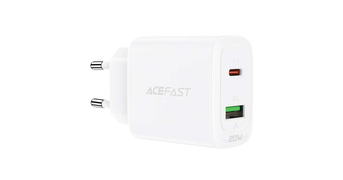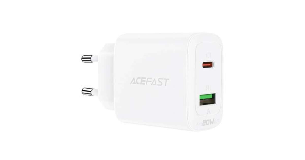 Adapter ładowarki Acefast, USB typu C/USB, 20 W, PPS, PD, QC 3.0, AFC, FCP, biały