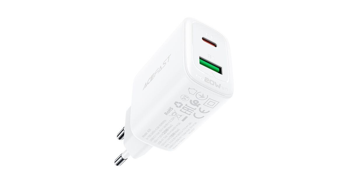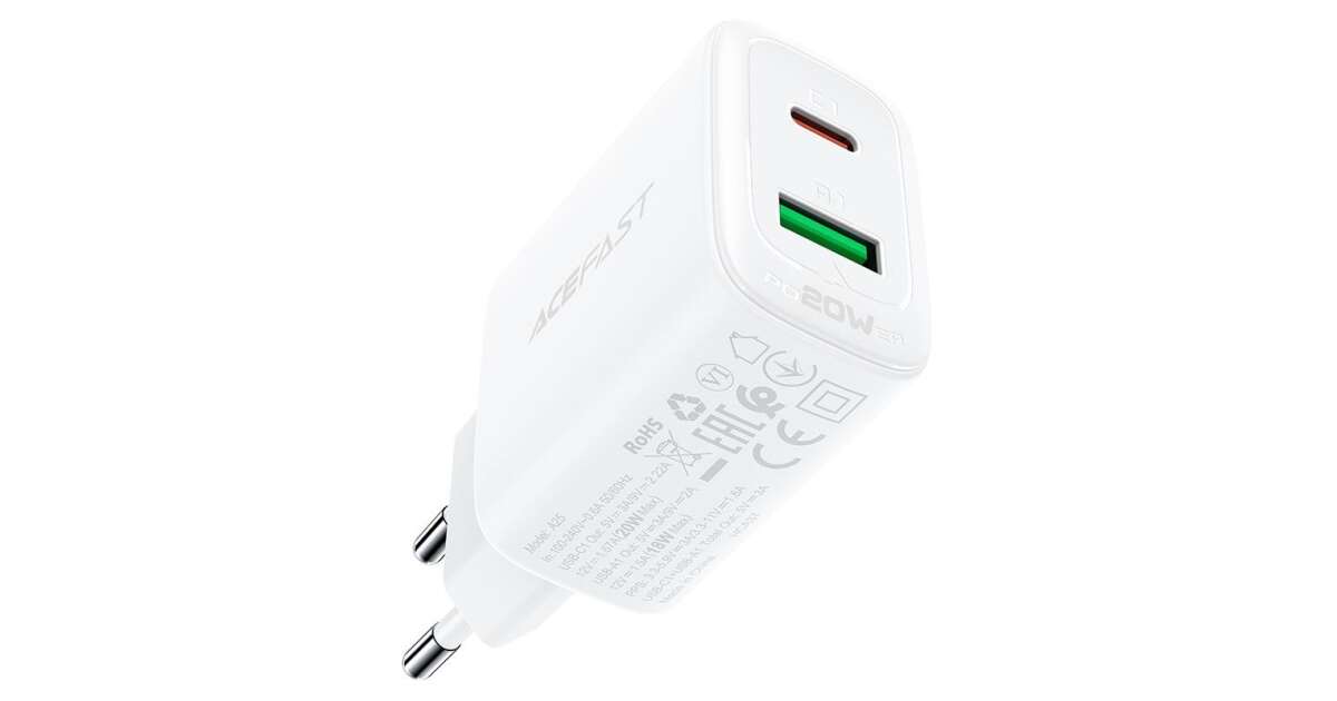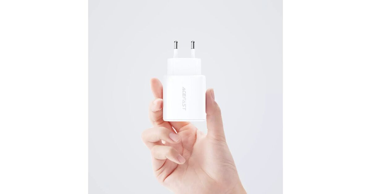 Adapter ładowarki Acefast, USB typu C/USB, 20 W, PPS, PD, QC 3.0, AFC, FCP, biały opis