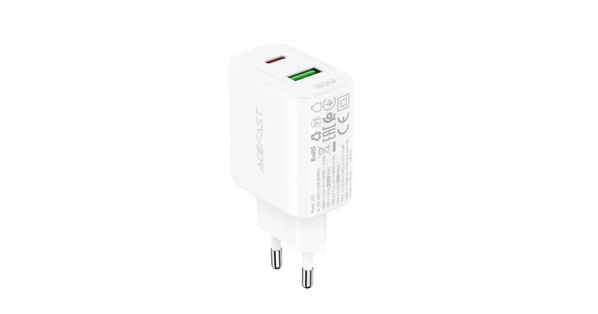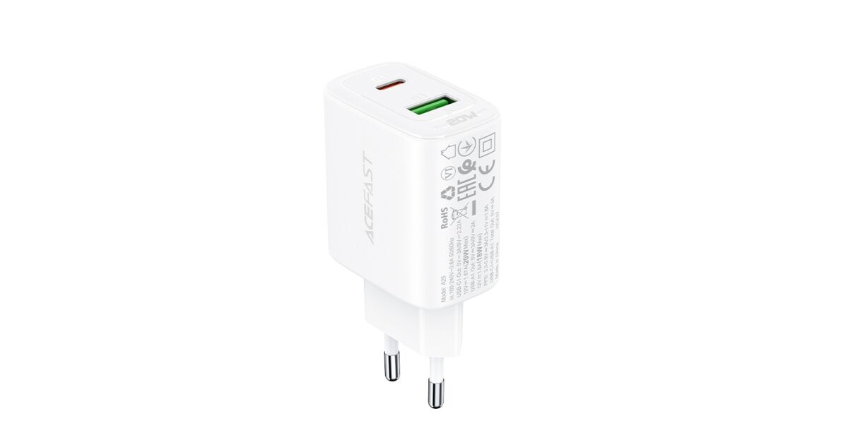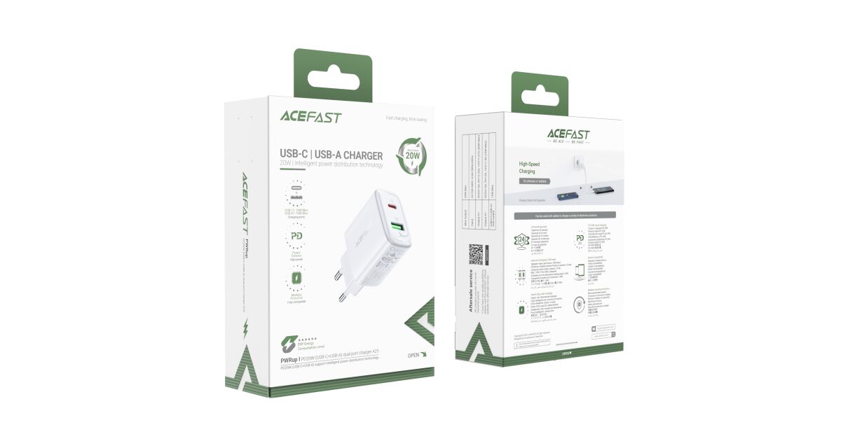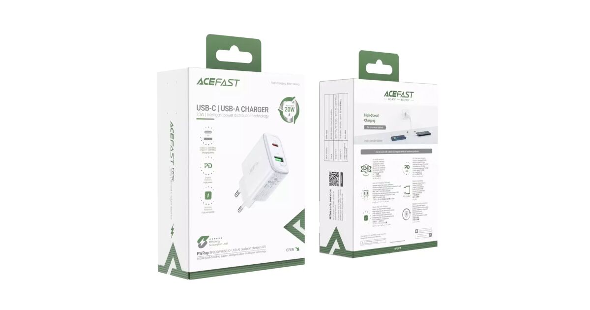 Z ładowarką sieciową Acefast A25 20W możesz jednocześnie ładować dwa urządzenia, dzięki portom USB-C i USB-A. Idealna do codziennego użytku, w domu i w podróży.
