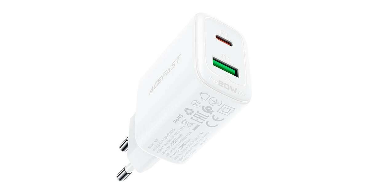 Adapter ładowarki Acefast, USB typu C/USB, 20 W, PPS, PD, QC 3.0, AFC, FCP, biały recenzje