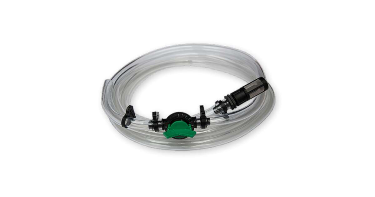 Ten praktyczny zestaw rur ssących to idealne rozwiązanie dla venturi o średnicy 1" i 1 1/2". Zestaw zawiera wbudowany filtr do usuwania zanieczyszczeń, łatwy w obsłudze zawór do regulacji przepływu płynu oraz trwały, przezroczysty wąż.