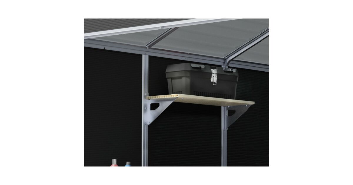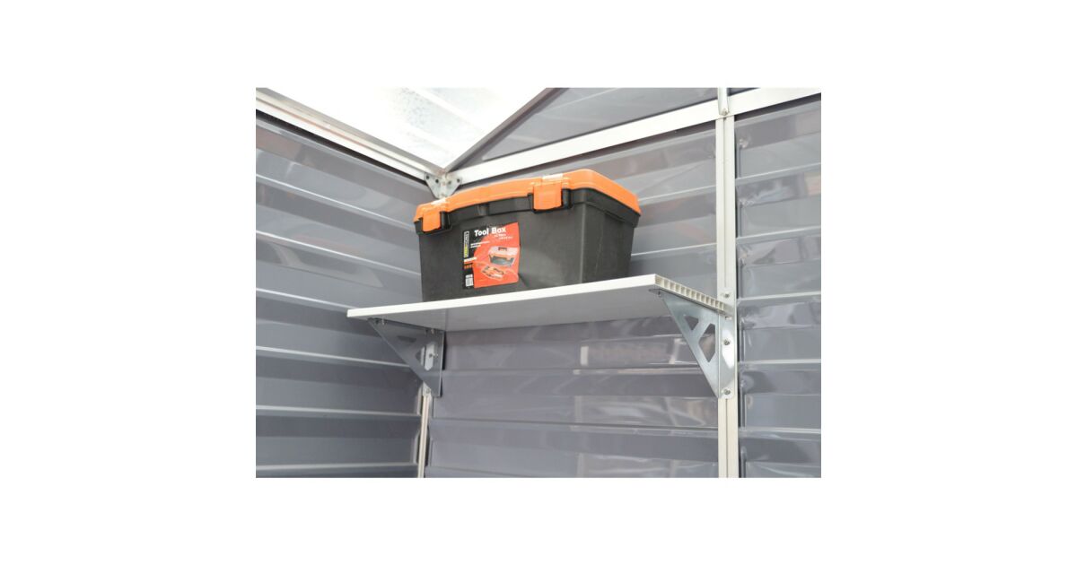 Ta praktyczna półka to idealne uzupełnienie Twojego schowka ogrodowego Palram Skylight, zapewniająca dodatkowe miejsce do przechowywania narzędzi, akcesoriów ogrodowych i innych przedmiotów. Jest łatwa w montażu, a dzięki stabilnej konstrukcji możesz bezpiecznie przechowywać swoje cenne przedmioty.