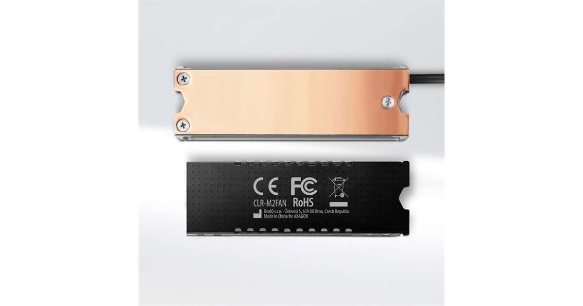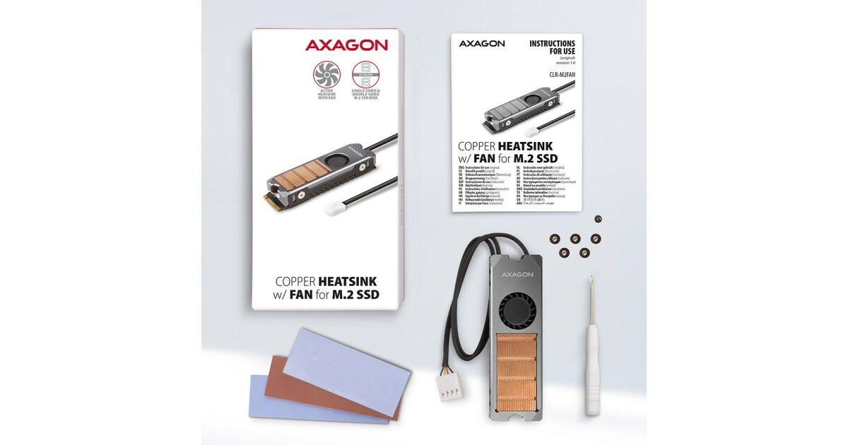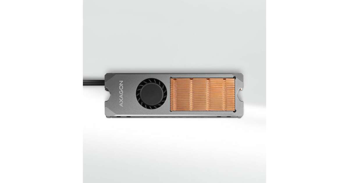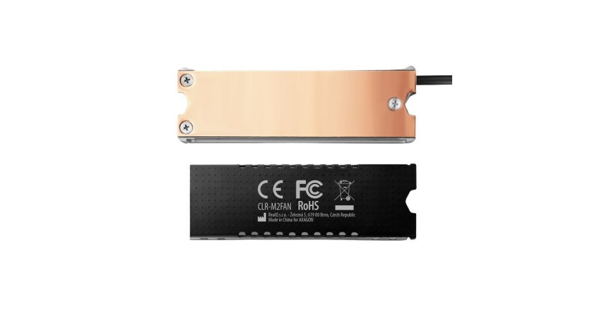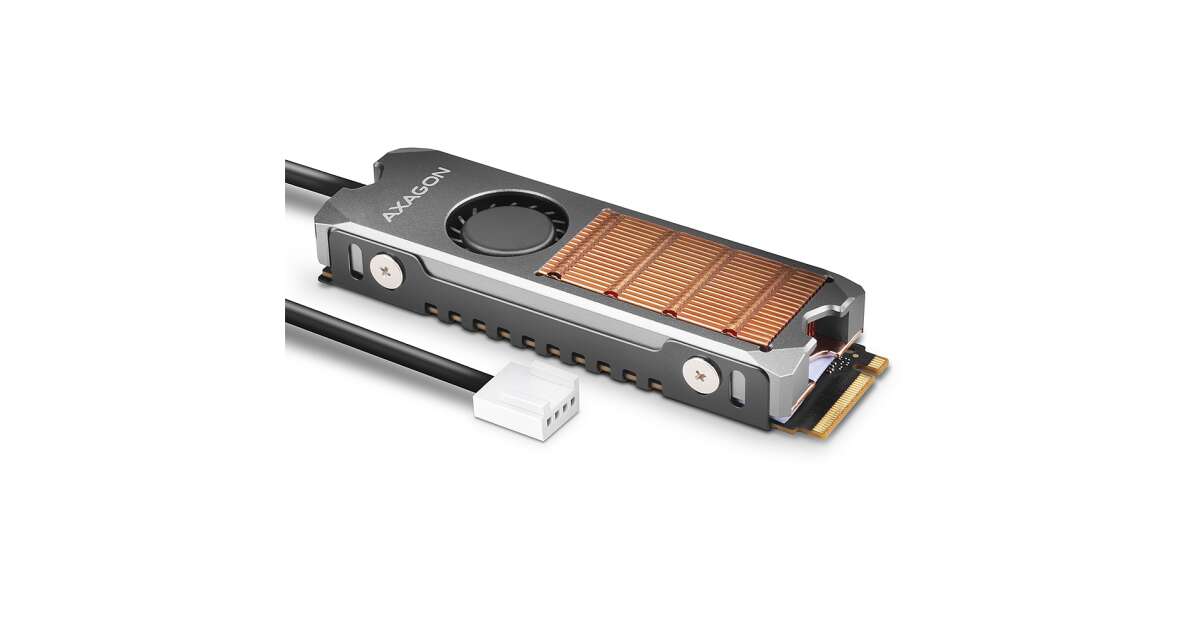 Axagon AXAGON CLR-M2FAN, miedziany radiator z wentylatorem do dwustronnych dysków M.2 SSD, wysokość 13 mm