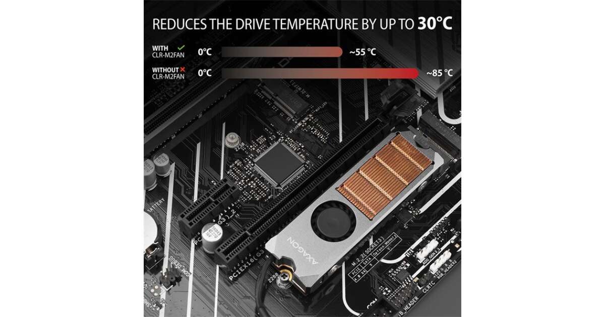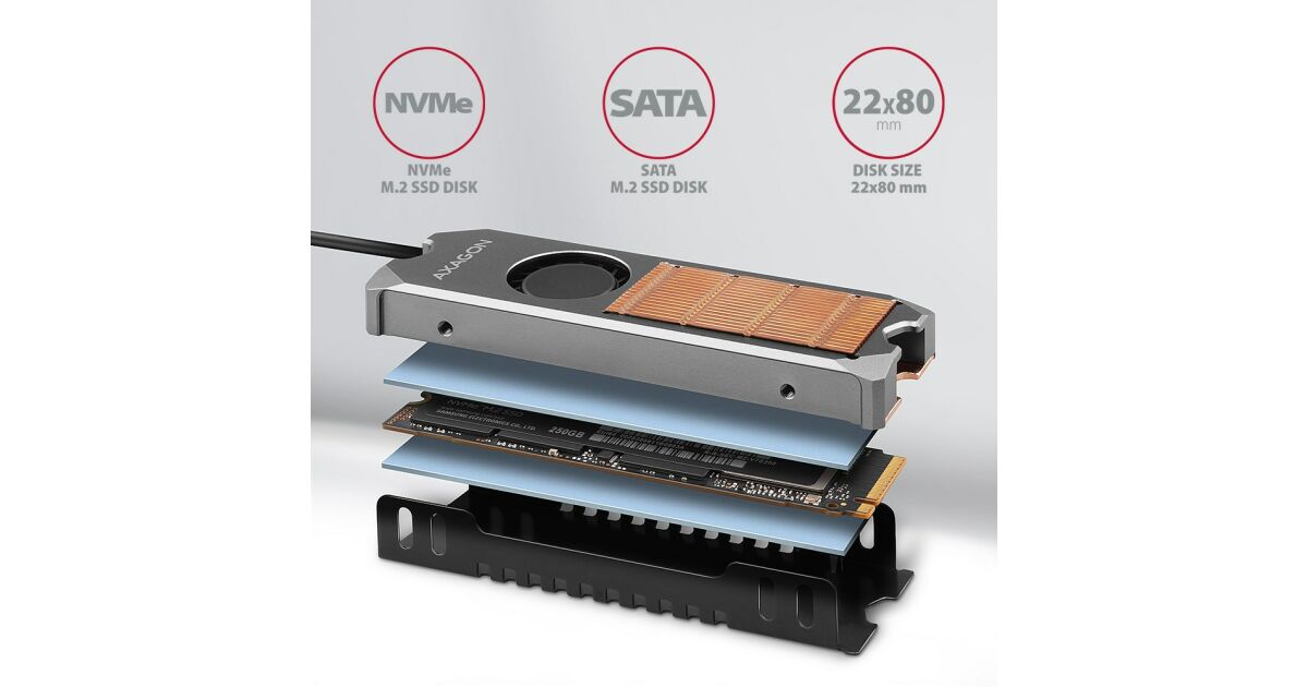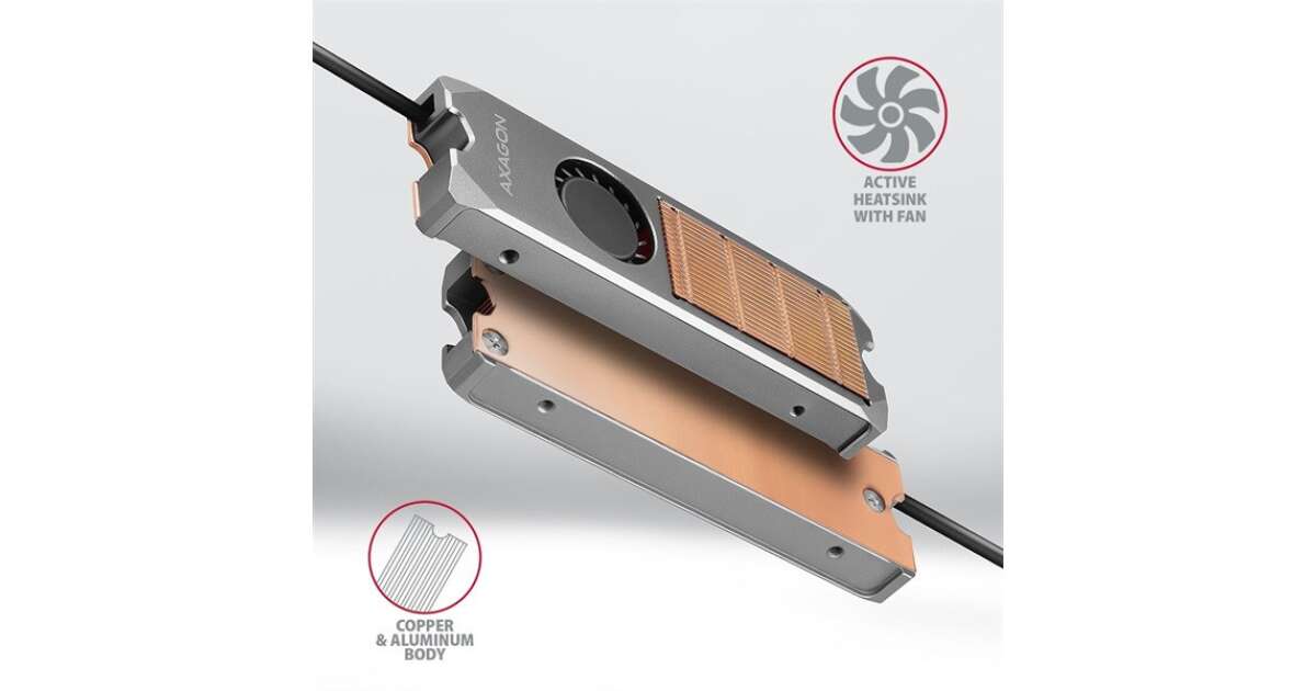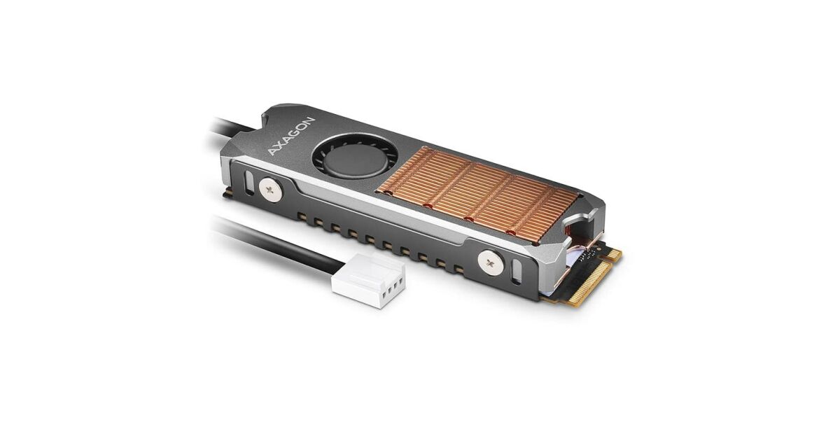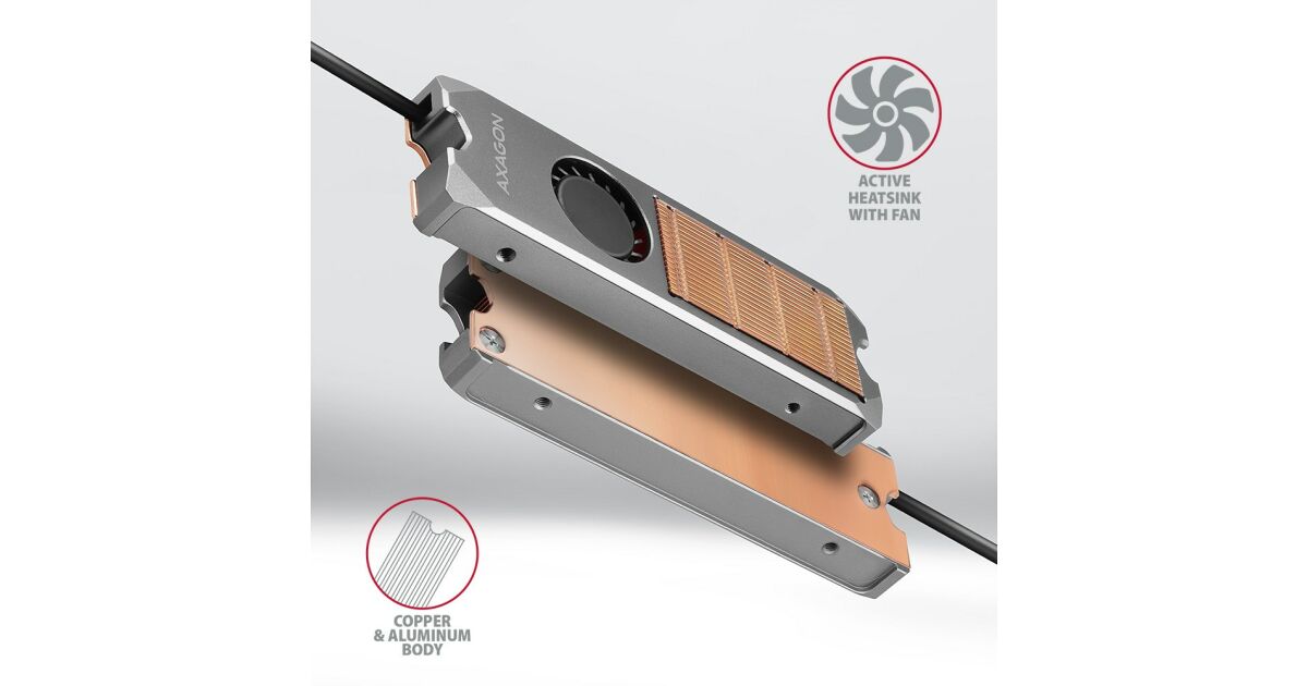 Axagon AXAGON CLR-M2FAN, miedziany radiator z wentylatorem do dwustronnych dysków M.2 SSD, wysokość 13 mm